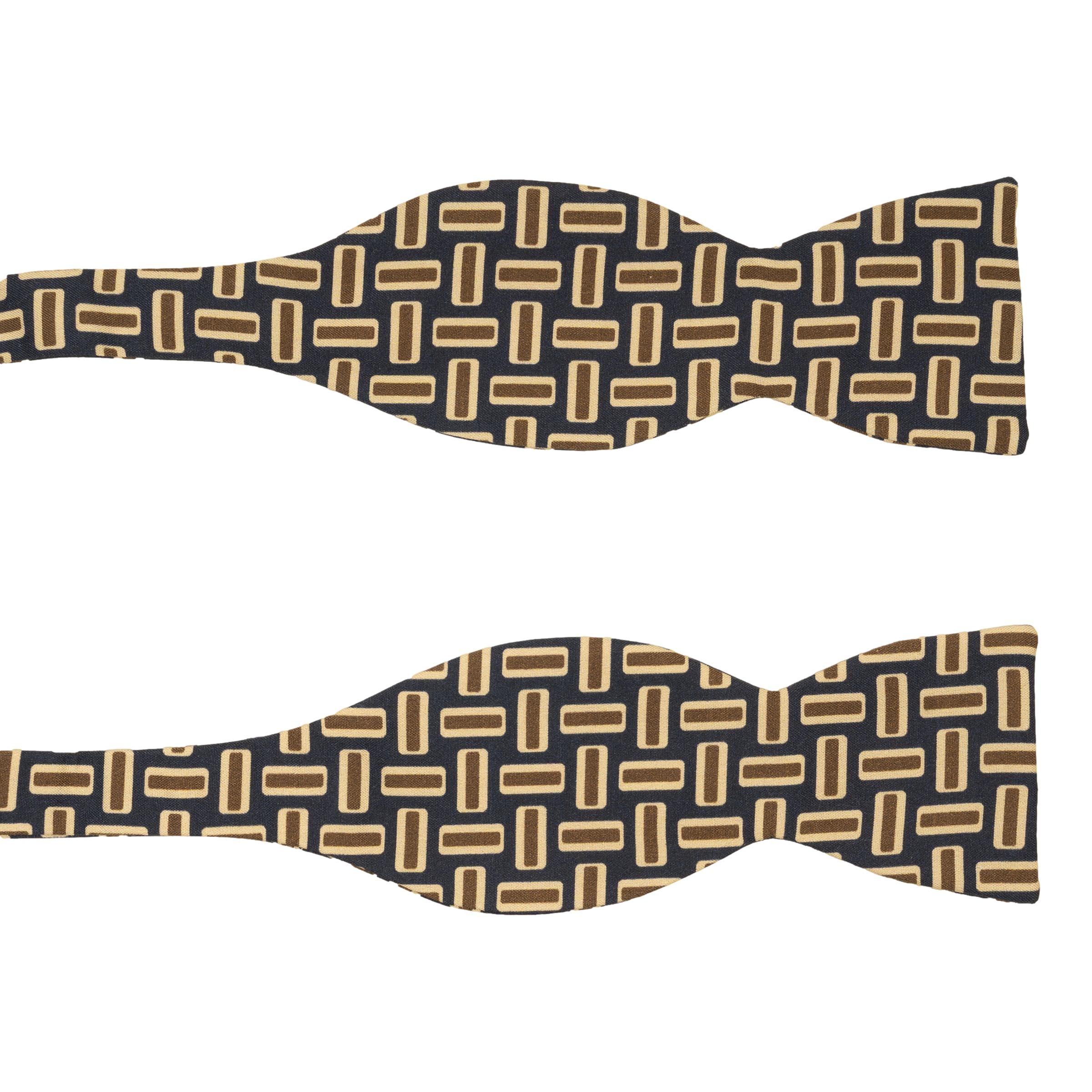 Hatch Bar Pattern Silk Bow Tie