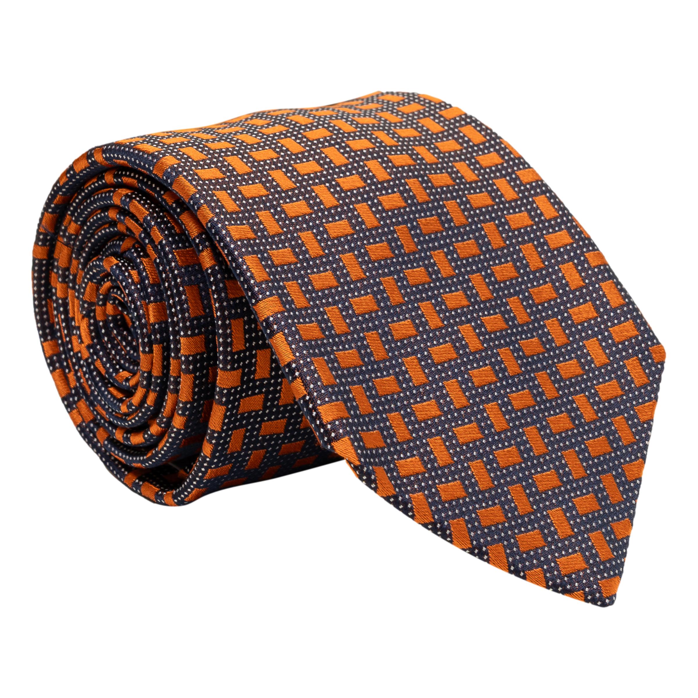 Navy with White Dots and Orange Rectangle Patterned Silk Tie