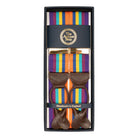 40 mm wide braces. Magenta and green striped rigid barathea. Handmade in England for The Andover Shop.