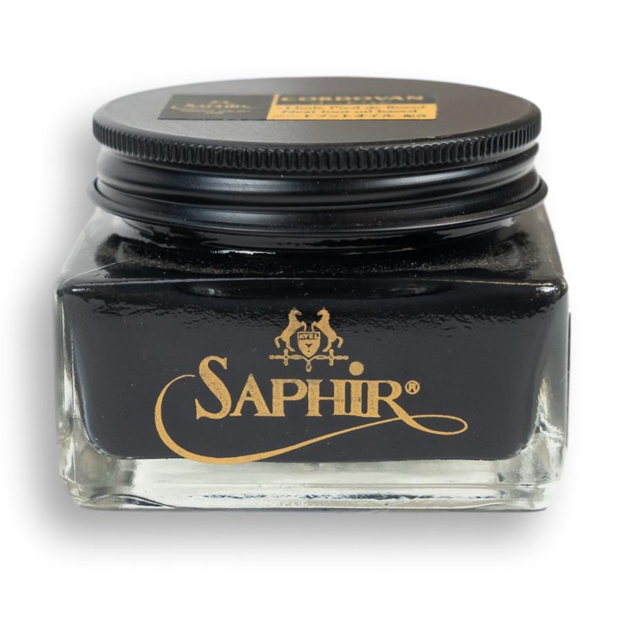 Saphir Médaille d’Or Cordovan Cream Shoe Polish is formulated with beeswax, solvents, a high concentration of pigments and neatsfoot oil to penetrate deeper into leather to maintain suppleness and sheen. It was specifically developed to nourish and protect Cordovan leather.