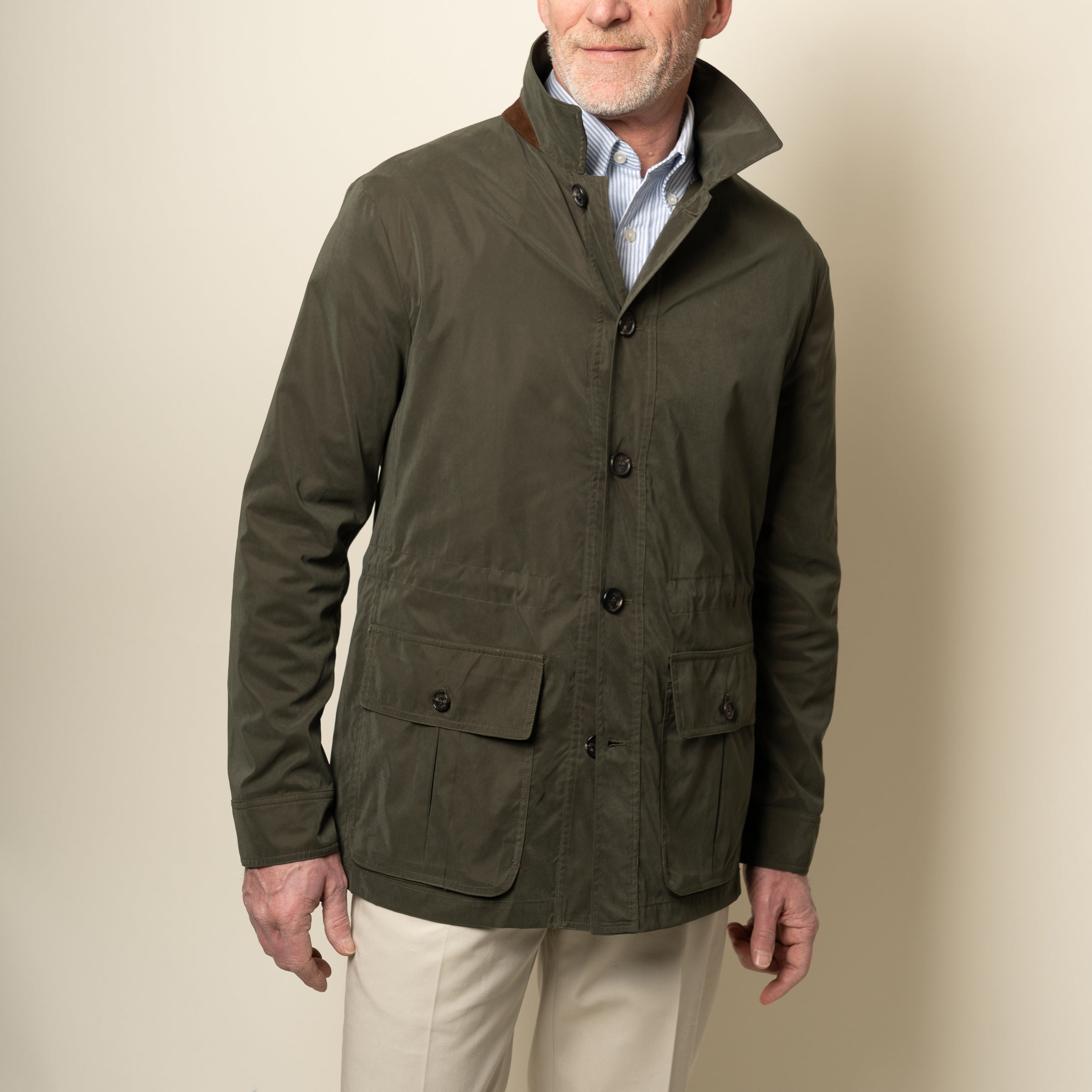 The Cortona Safari Jacket, made in Italy for The Andover Shop, is an ideal choice for spring and summer wear. It features two button-front hip pockets with side entry, along with a cinch-able waist for a more tailored fit. This is perfect for adding a touch of style and functionality to your warm-weather wardrobe.