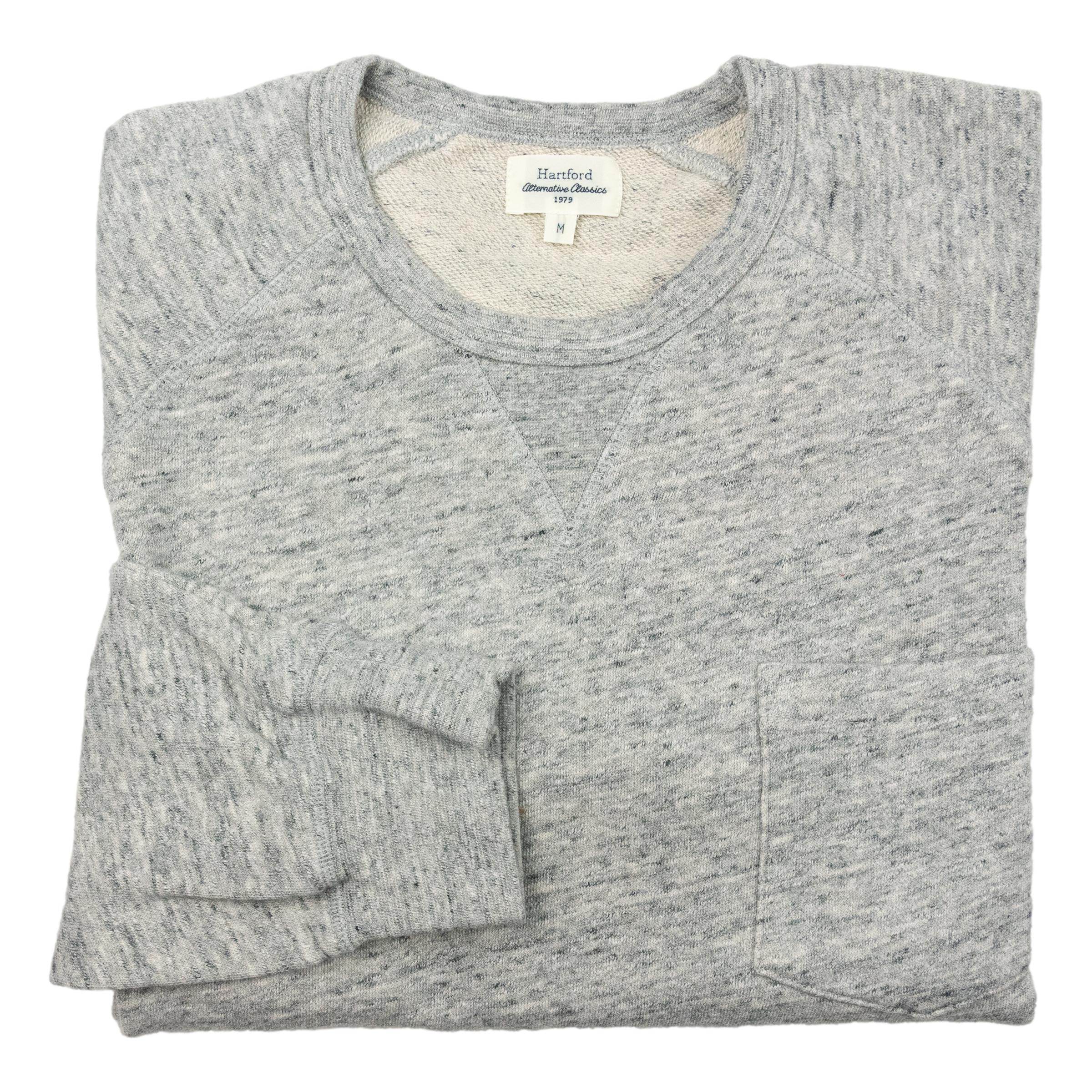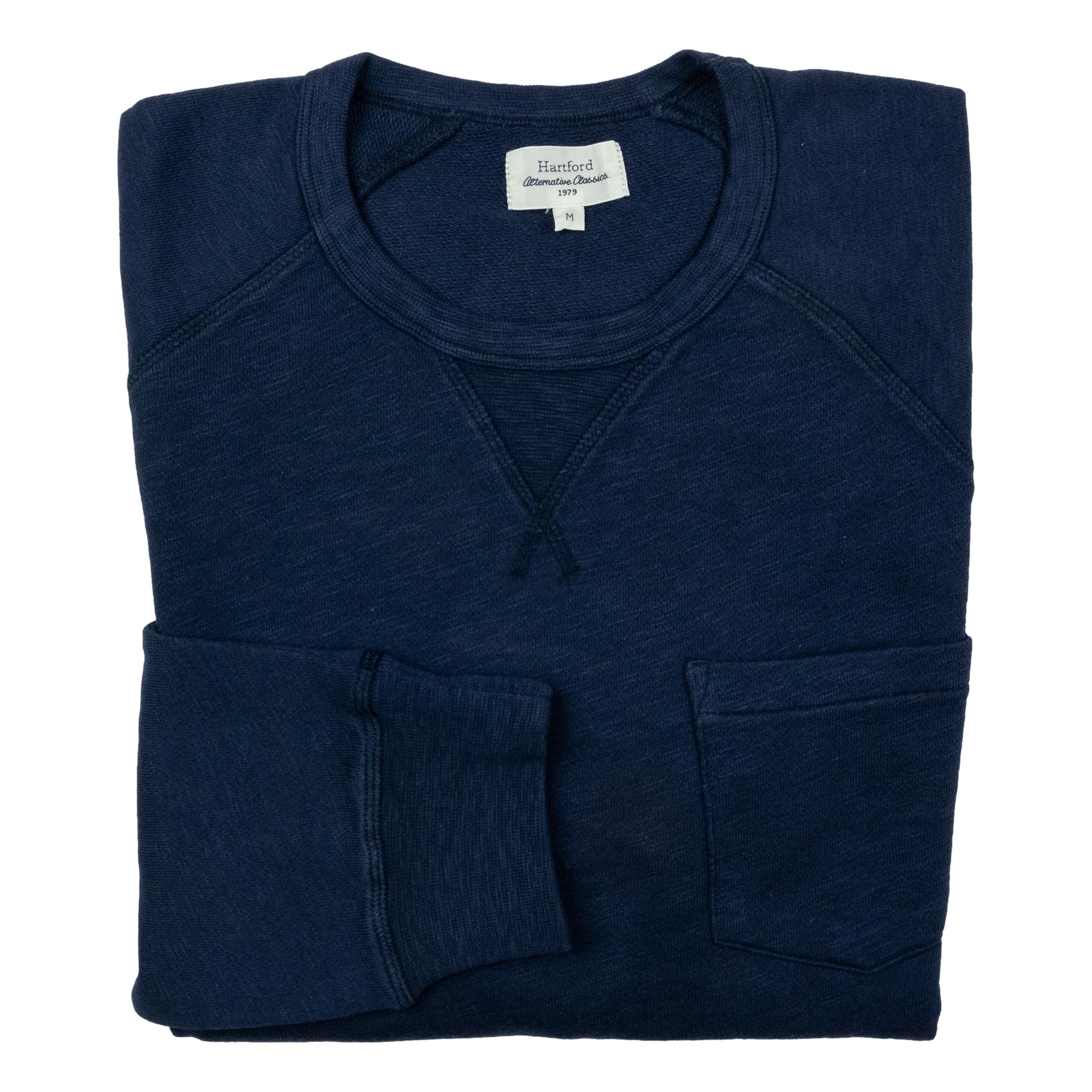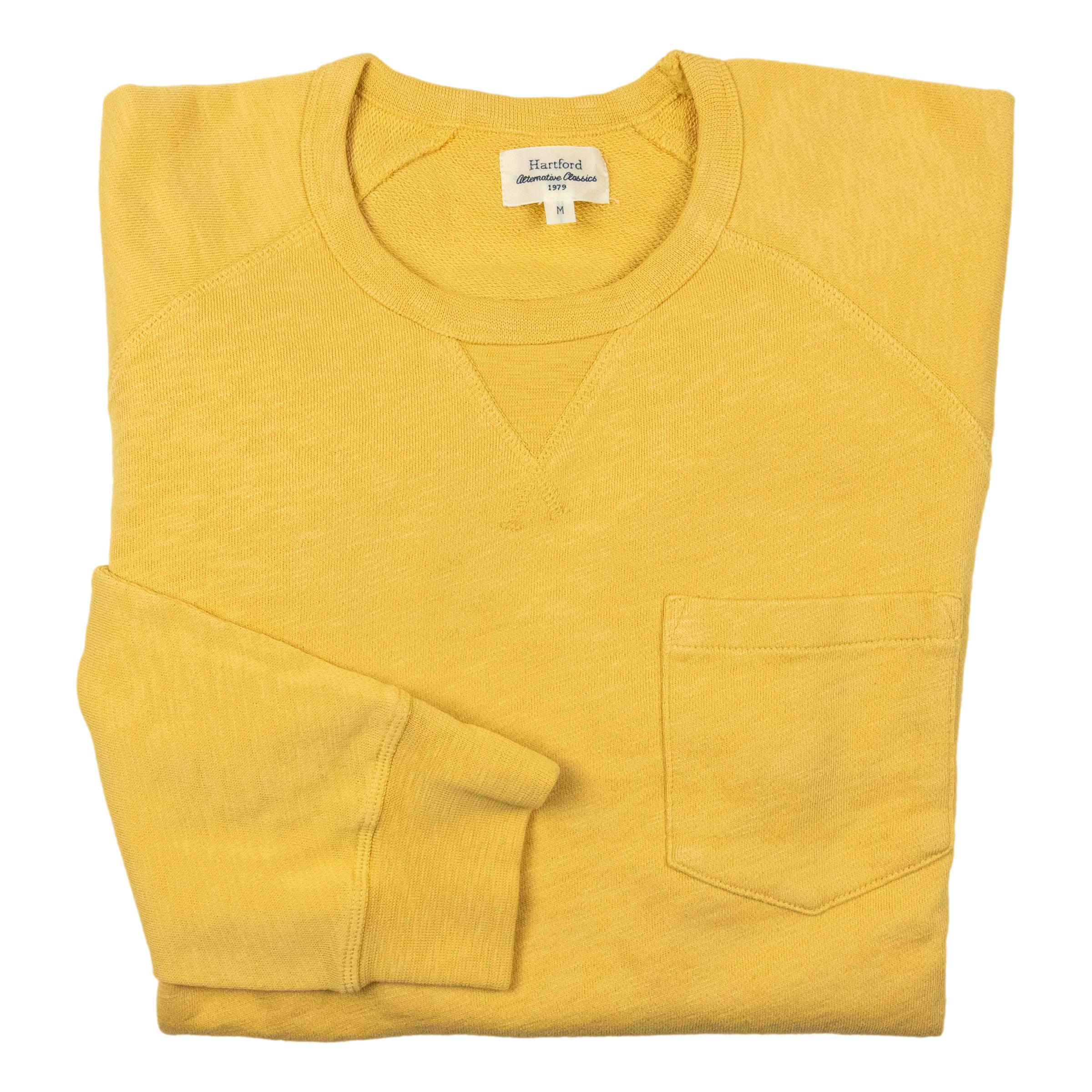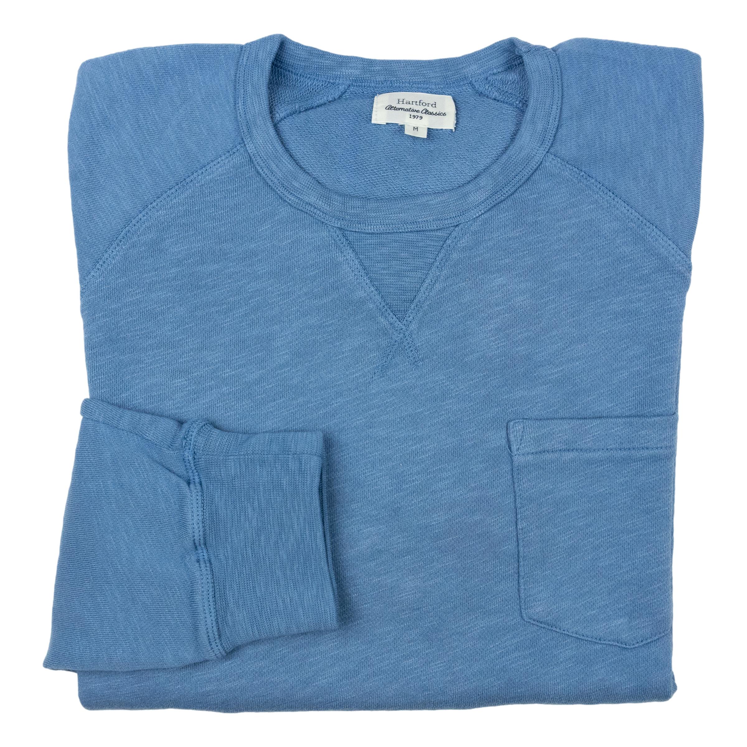 Men's raglan sleeve sweatshirt with chest pocket and ribbed trims at the neckline, cuffs, and waist. Lightweight and flexible, it's exceptionally comfortable to wear. Light french terry cotton jersey fabric. This soft knit fabric is not brushed, so it has finer texture on the reverse. Made in Portugal.