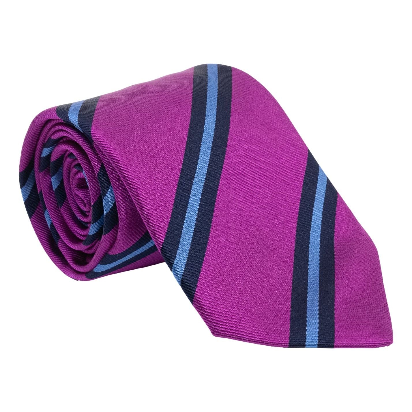 Fuchsia with Navy and Sky Blue Repp Stripe Silk Tie