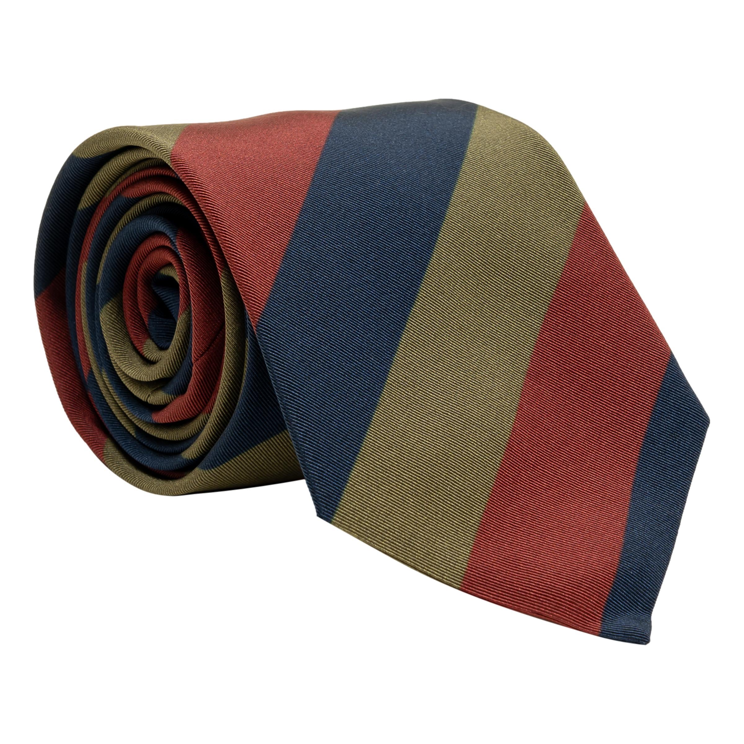 Navy, Olive, and Maroon Stripe Irish Poplin Tie