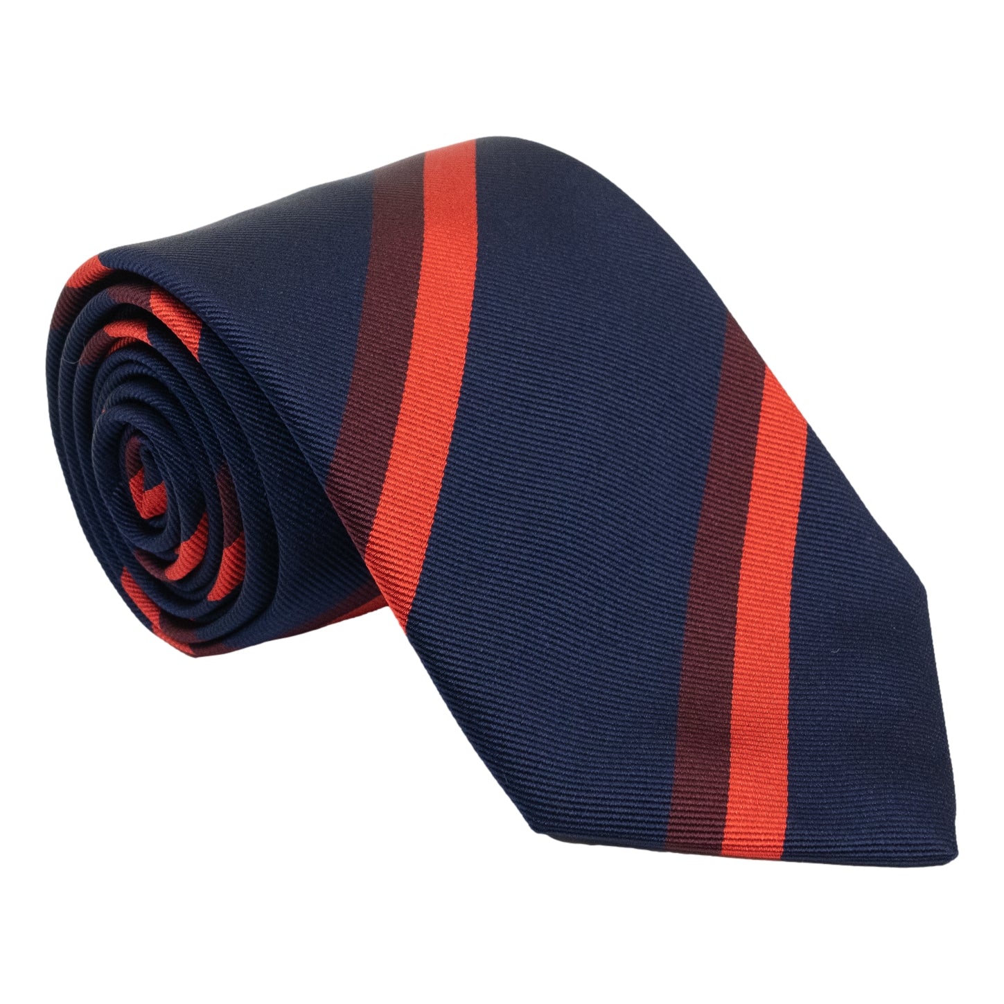 Navy with Maroon and Orange Repp Stripe Silk Tie