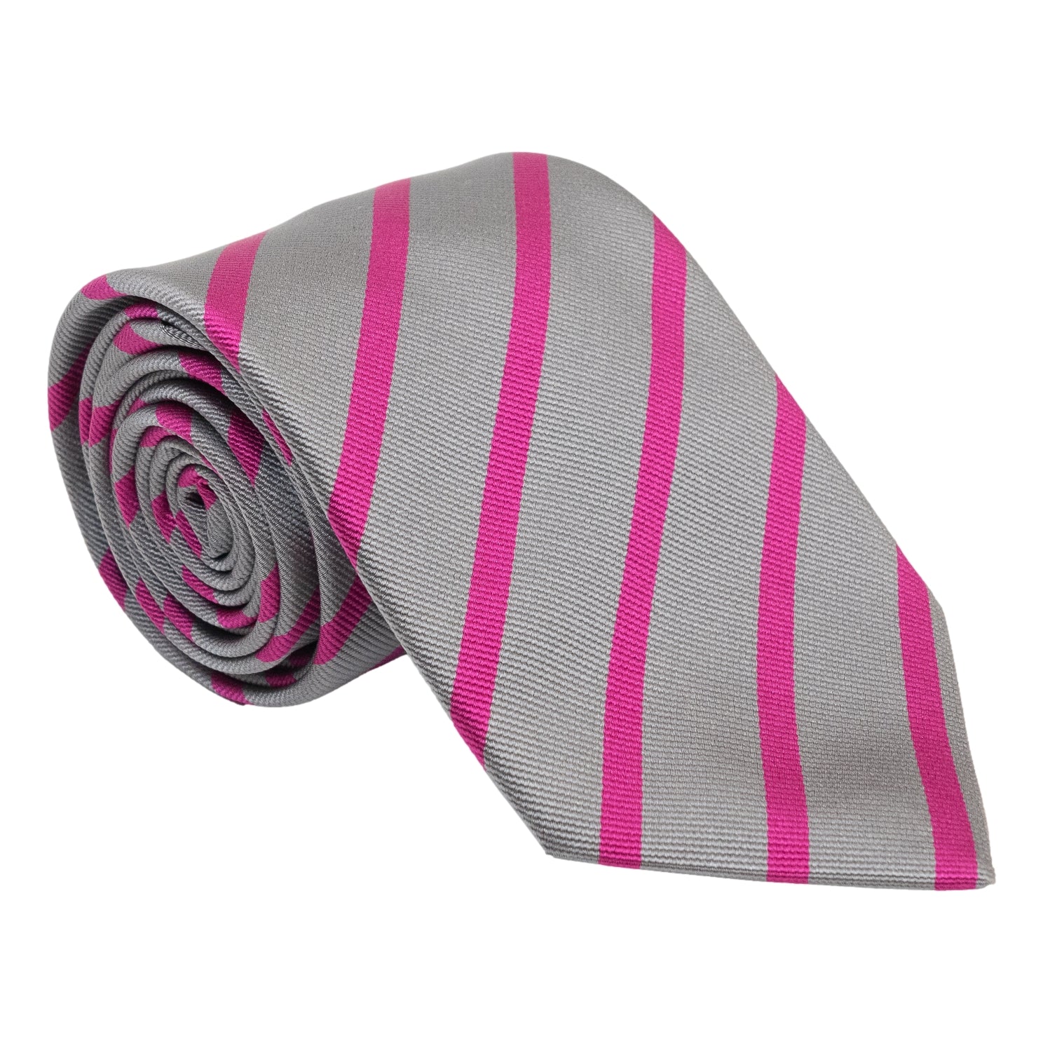 Silver and Pink Repp Stripe Silk Tie