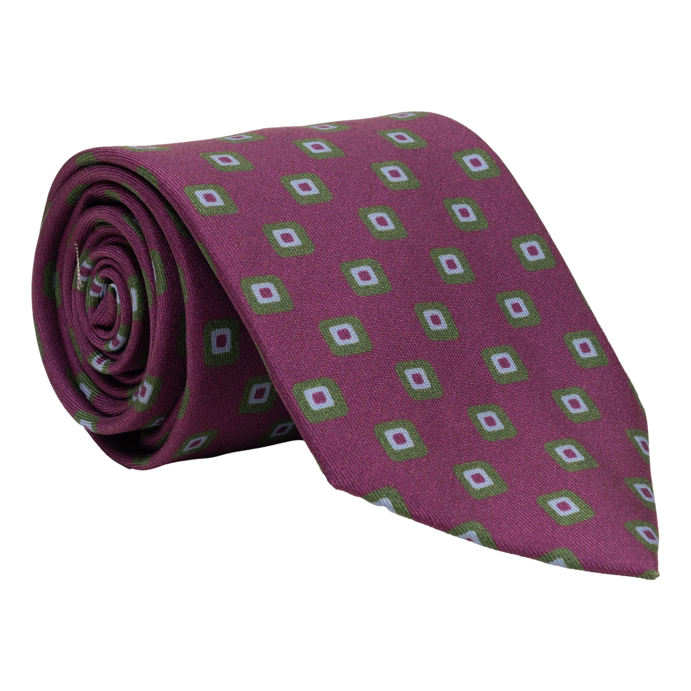 This 100% silk traditional tie is hand-finished and 8 cm in width, 149 cm in length. The color and design makes it versatile and complimentary to many wardrobe options. The perfect addition to every closet and tie collection. Made in England and dry clean only.
