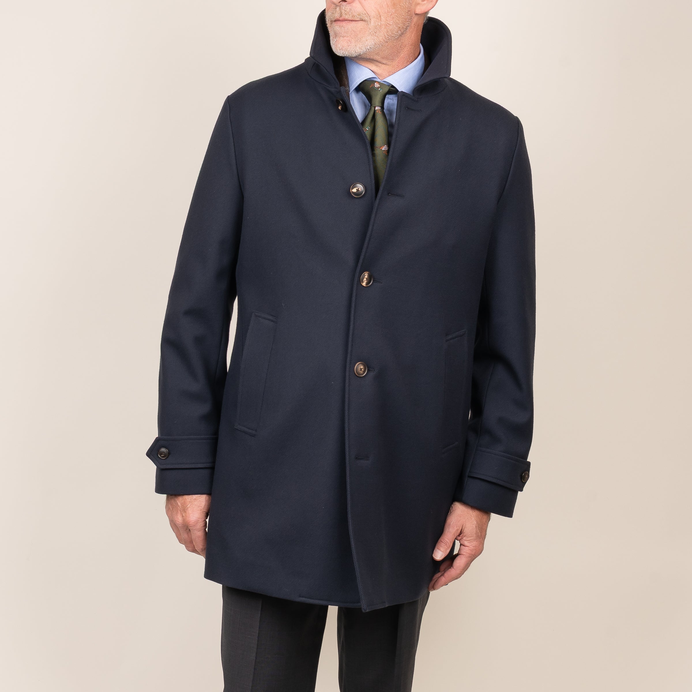 This Loro Piana piece is crafted from a 600-gram high-tenacity 100% wool fabric, offering exceptional durability and refined structure. Backed with a protective membrane and finished with a smooth Bemberg lining, it delivers comfort, breathability, and performance with uncompromising luxury.