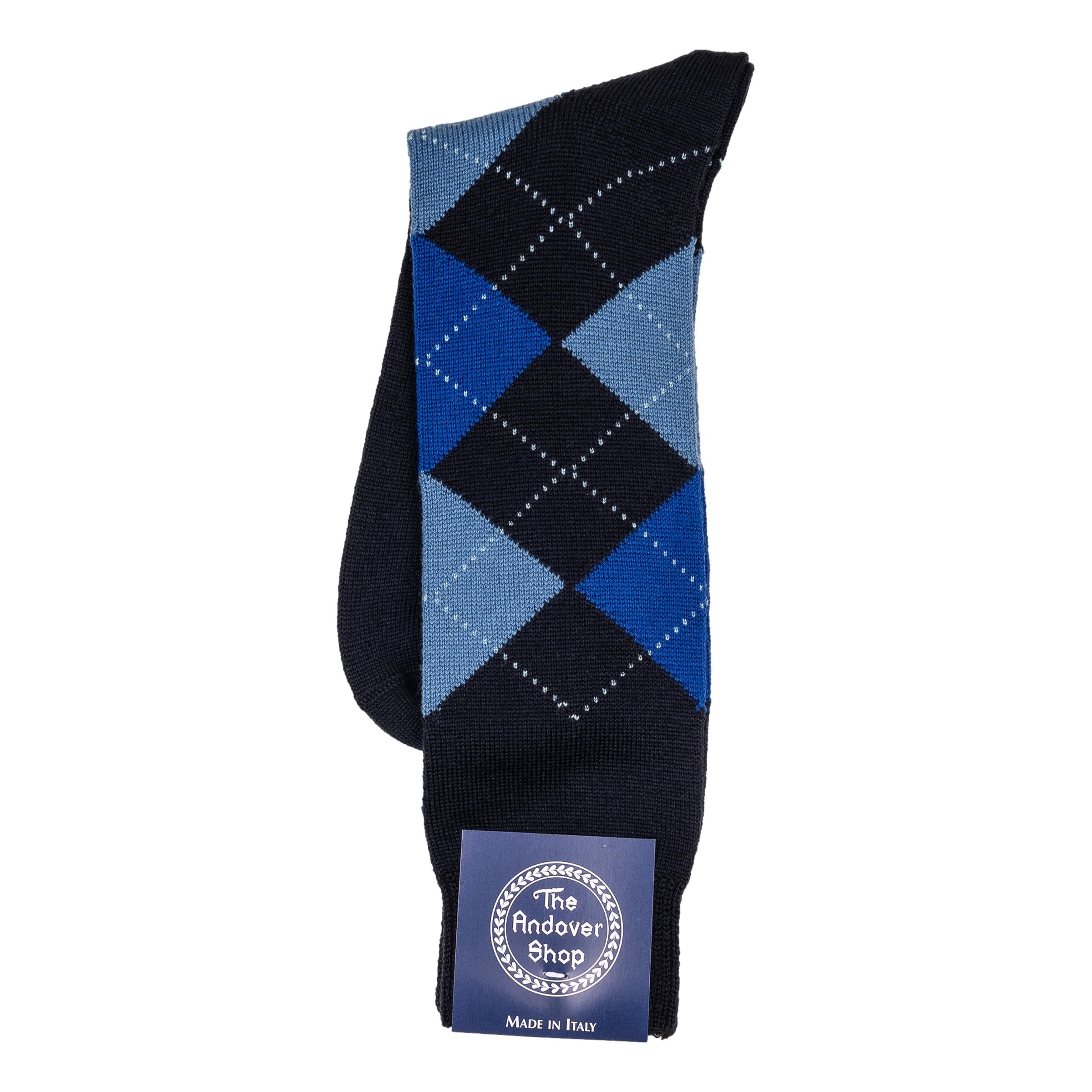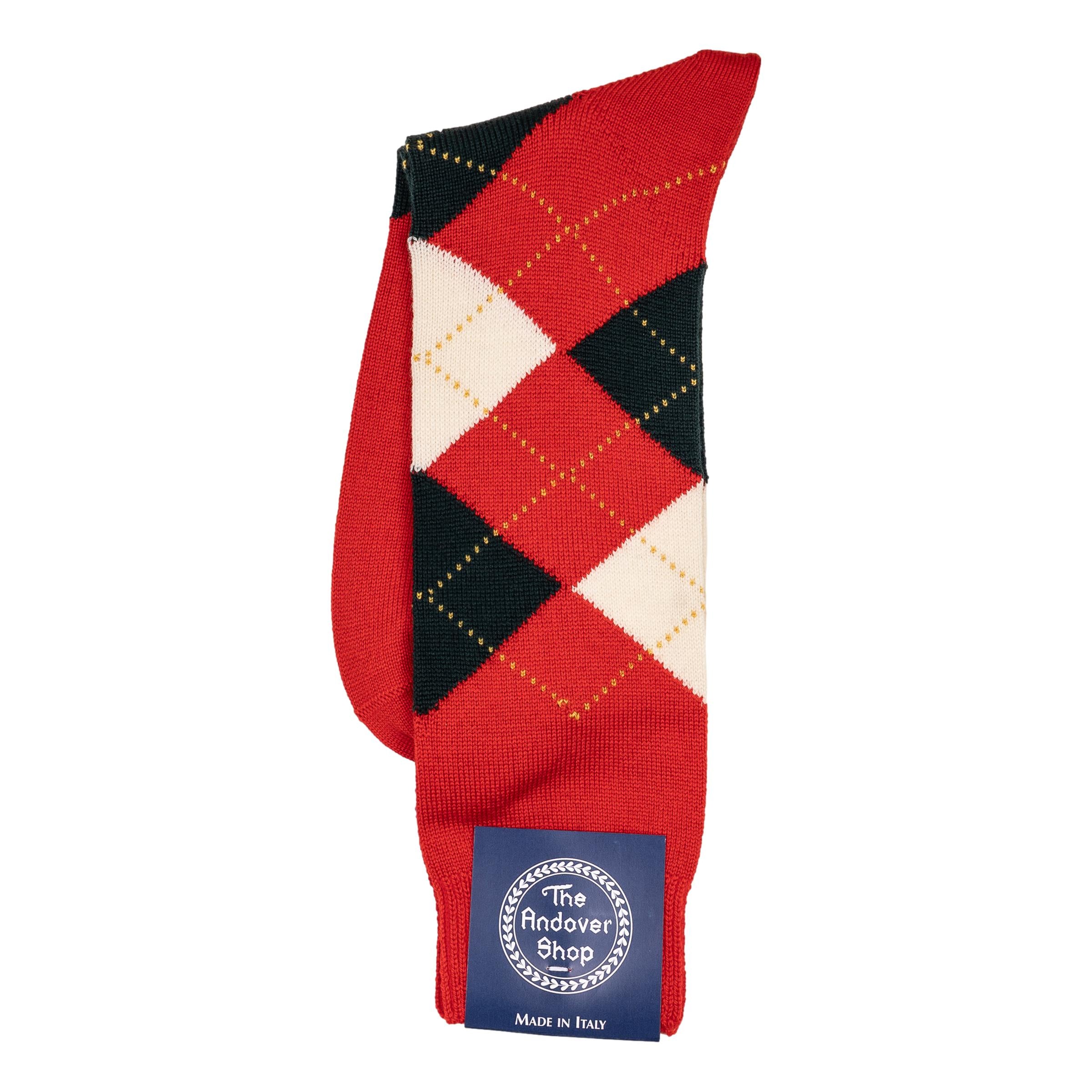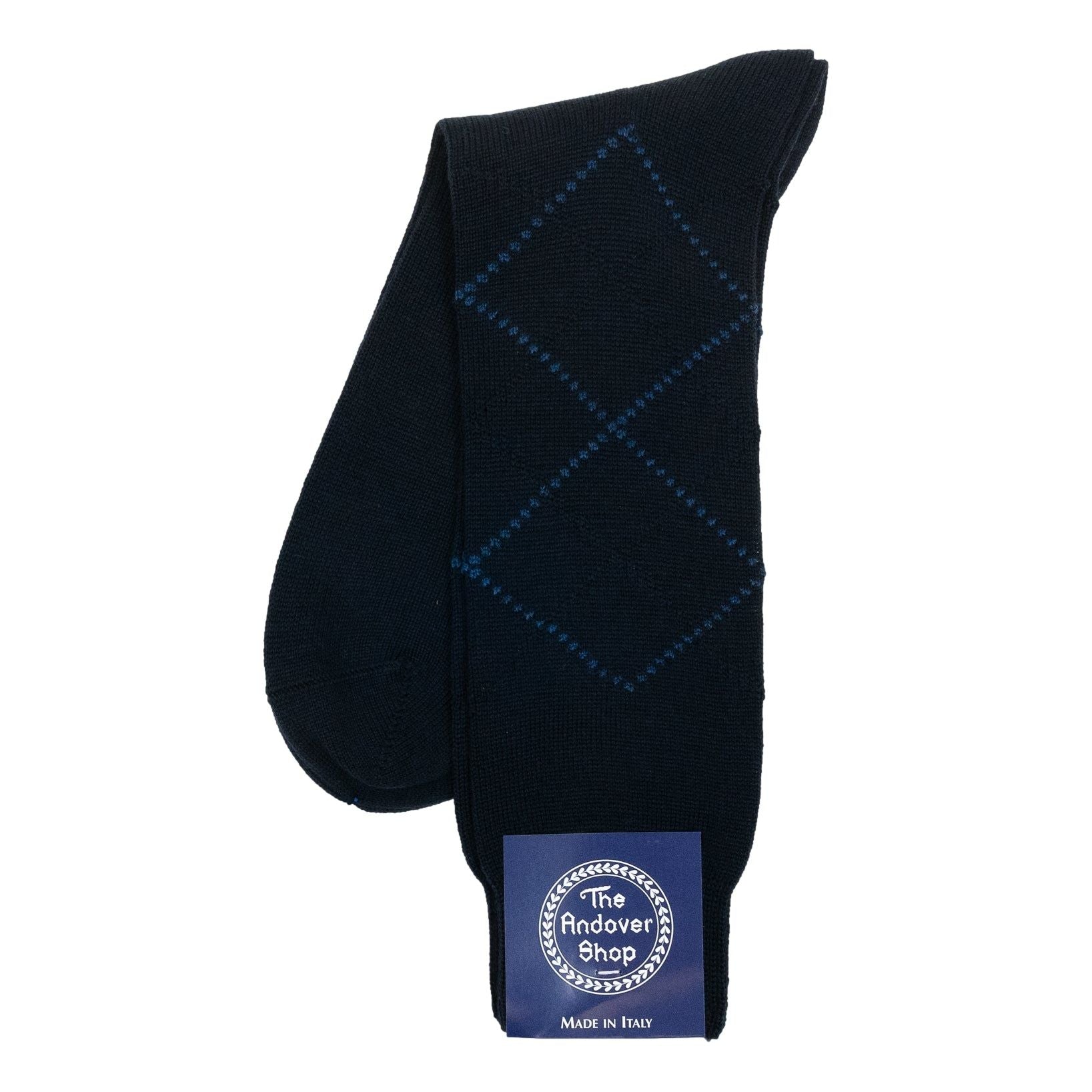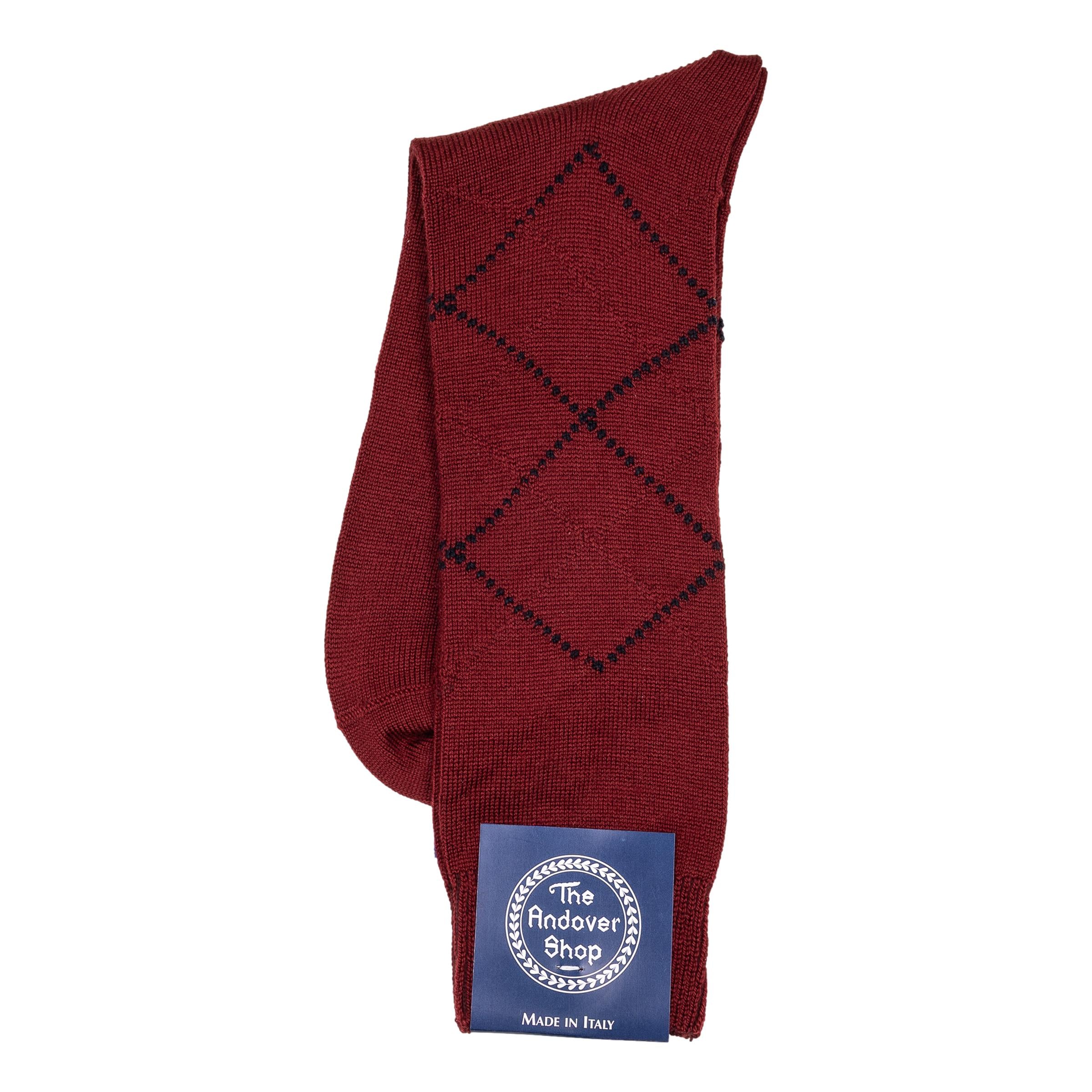 This mid-calf argyle wool dress sock can be worn on any occasion, casual or formal, and is a quintessential staple for any gentleman who enjoys spicing up his wardrobe. Made from fine wool in Italy for The Andover Shop. One size fits most.
