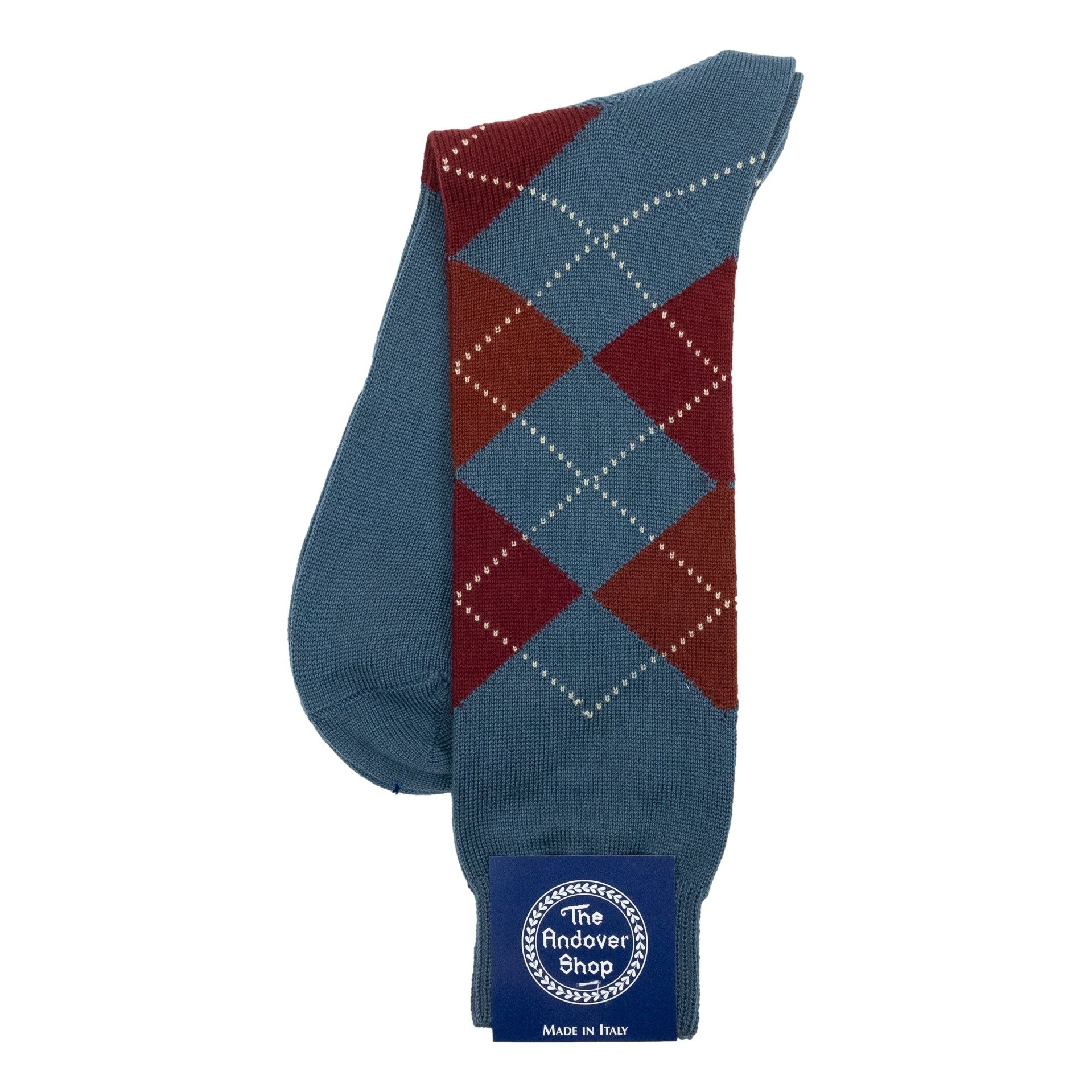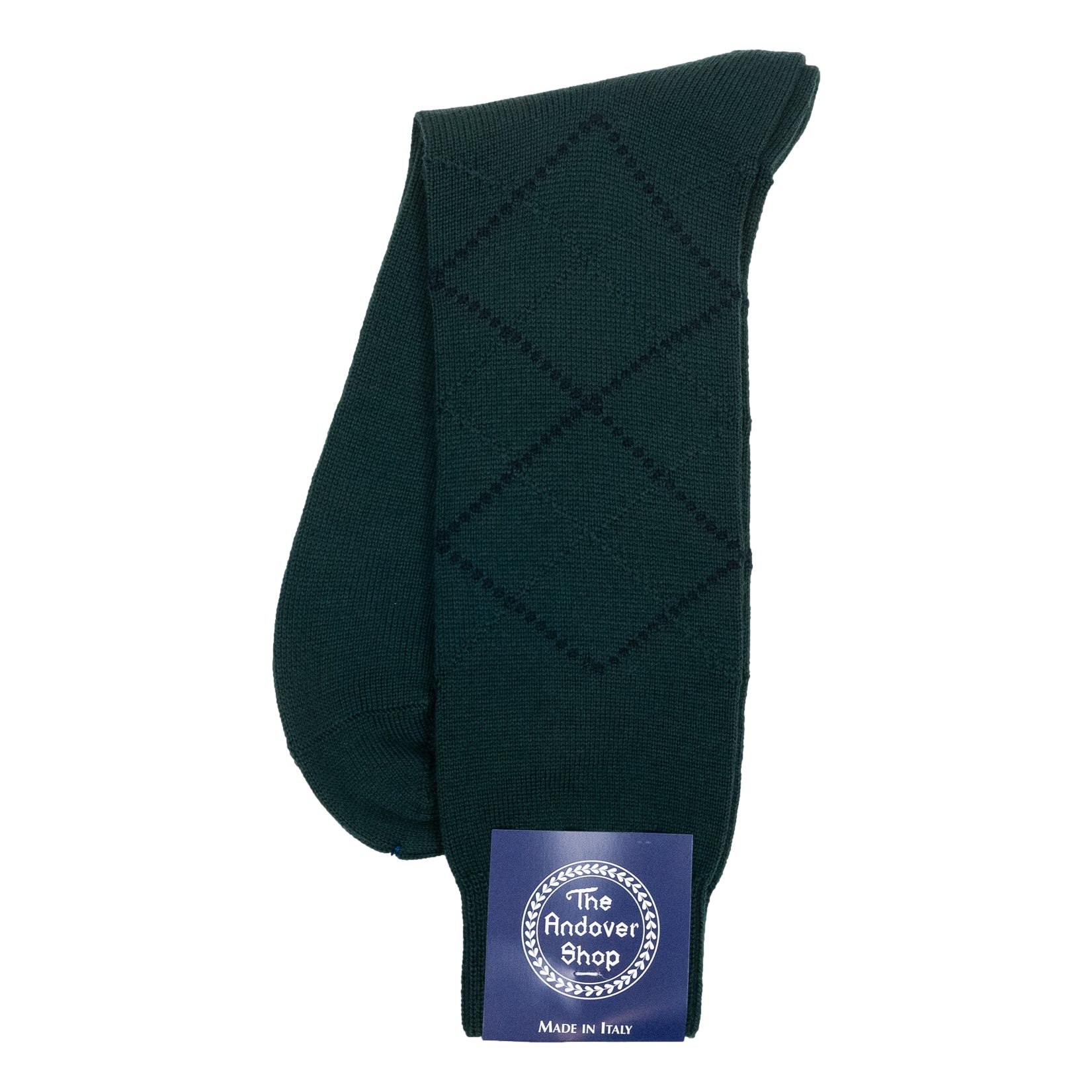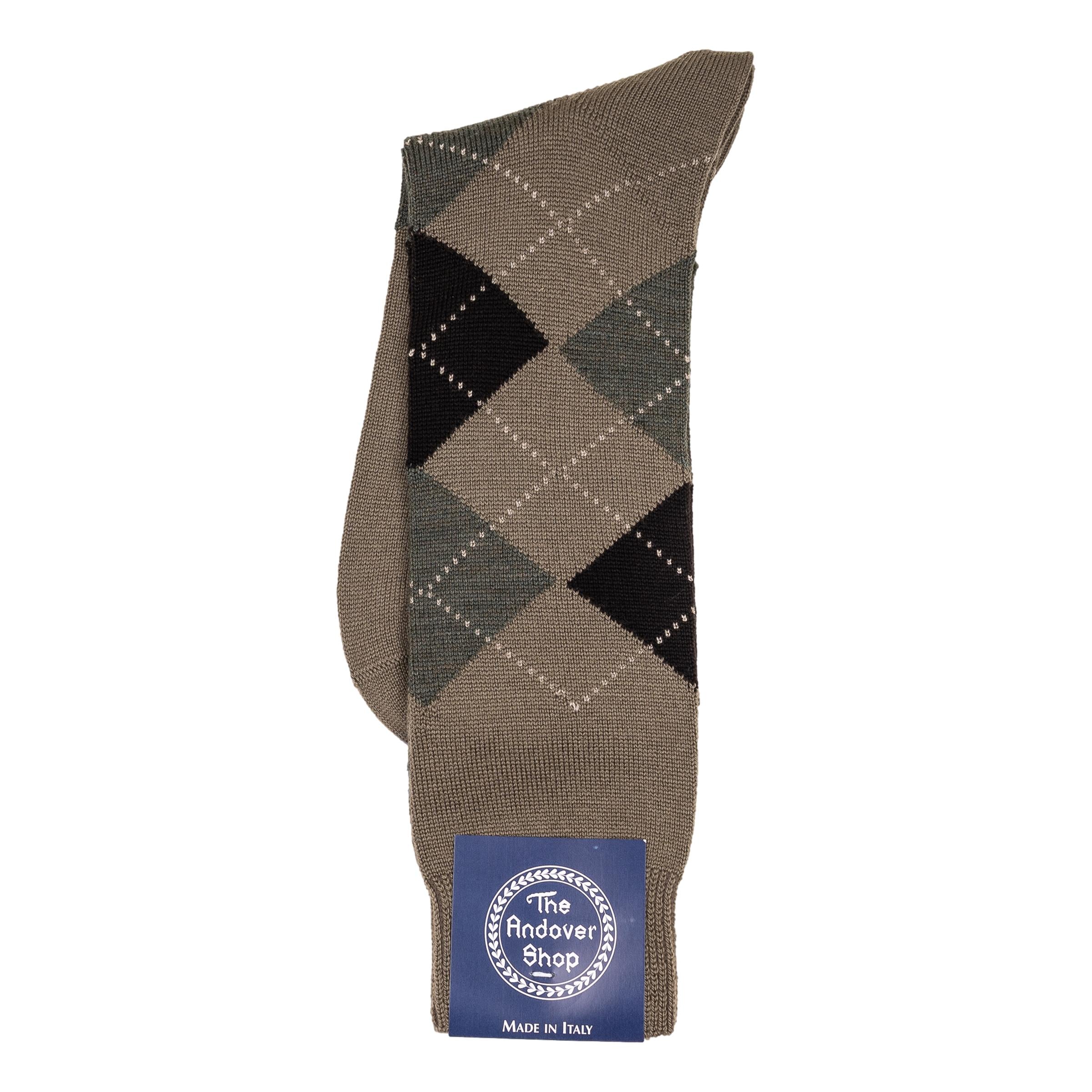 This mid-calf argyle wool dress sock can be worn on any occasion, casual or formal, and is a quintessential staple for any gentleman who enjoys spicing up his wardrobe. Made from fine wool in Italy for The Andover Shop. One size fits most.