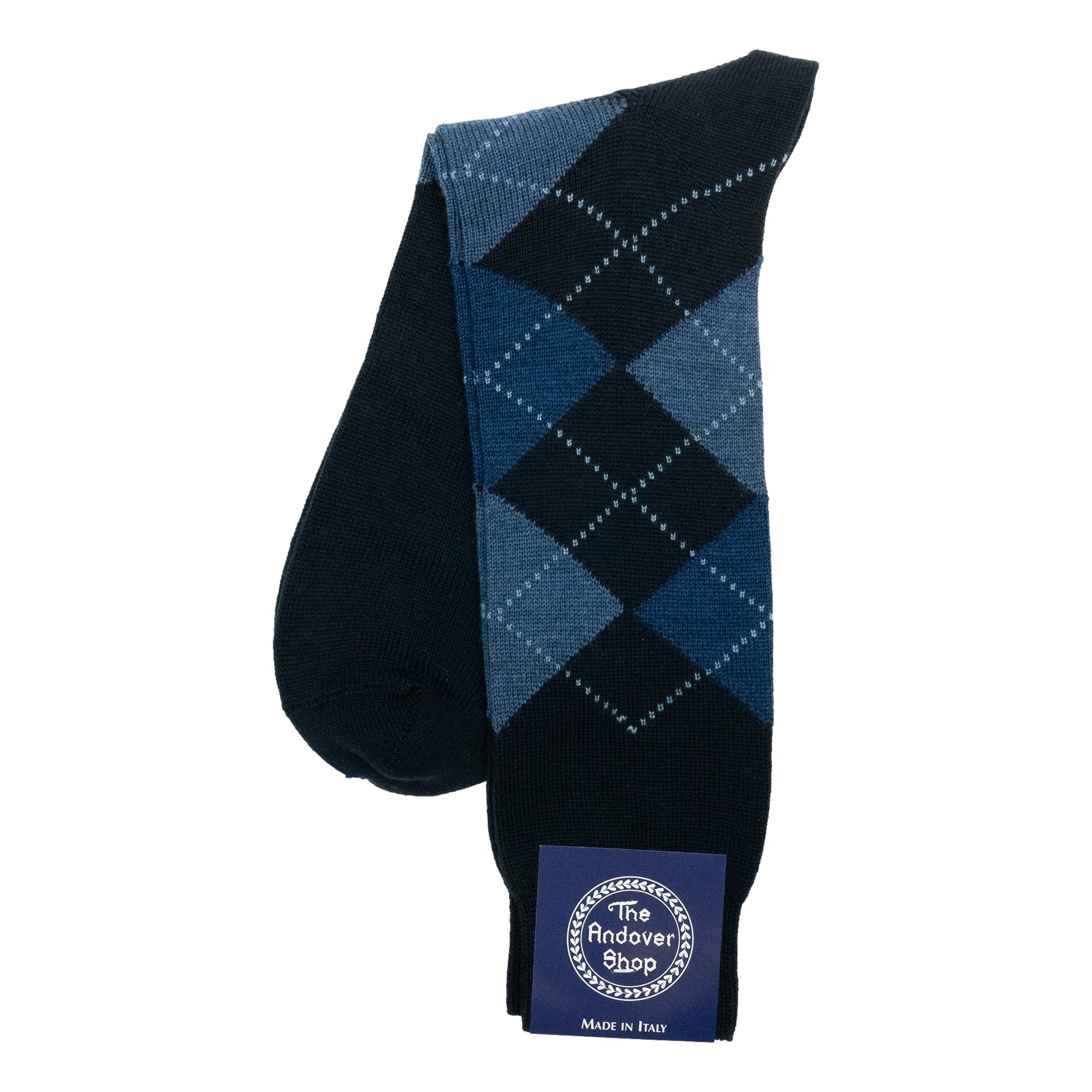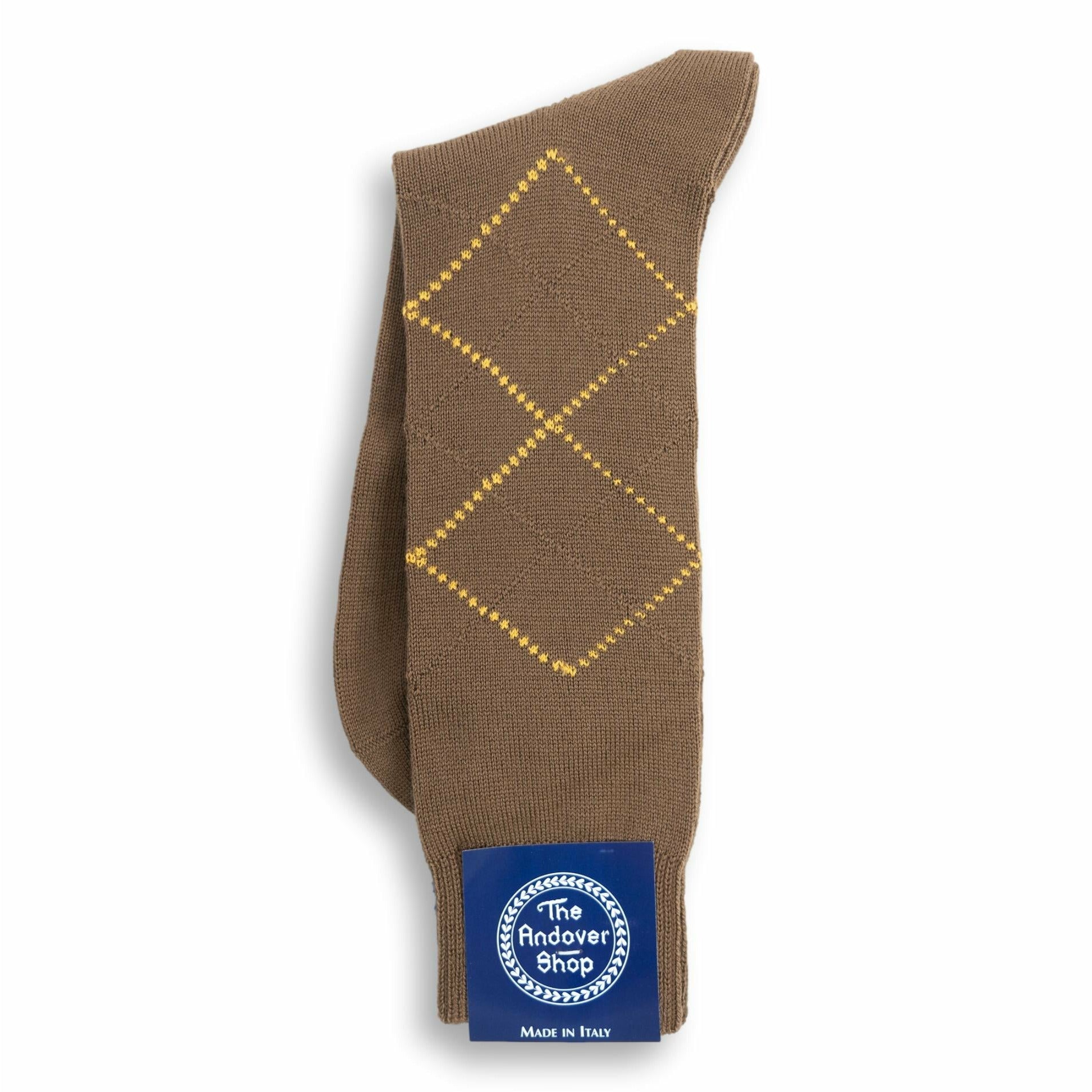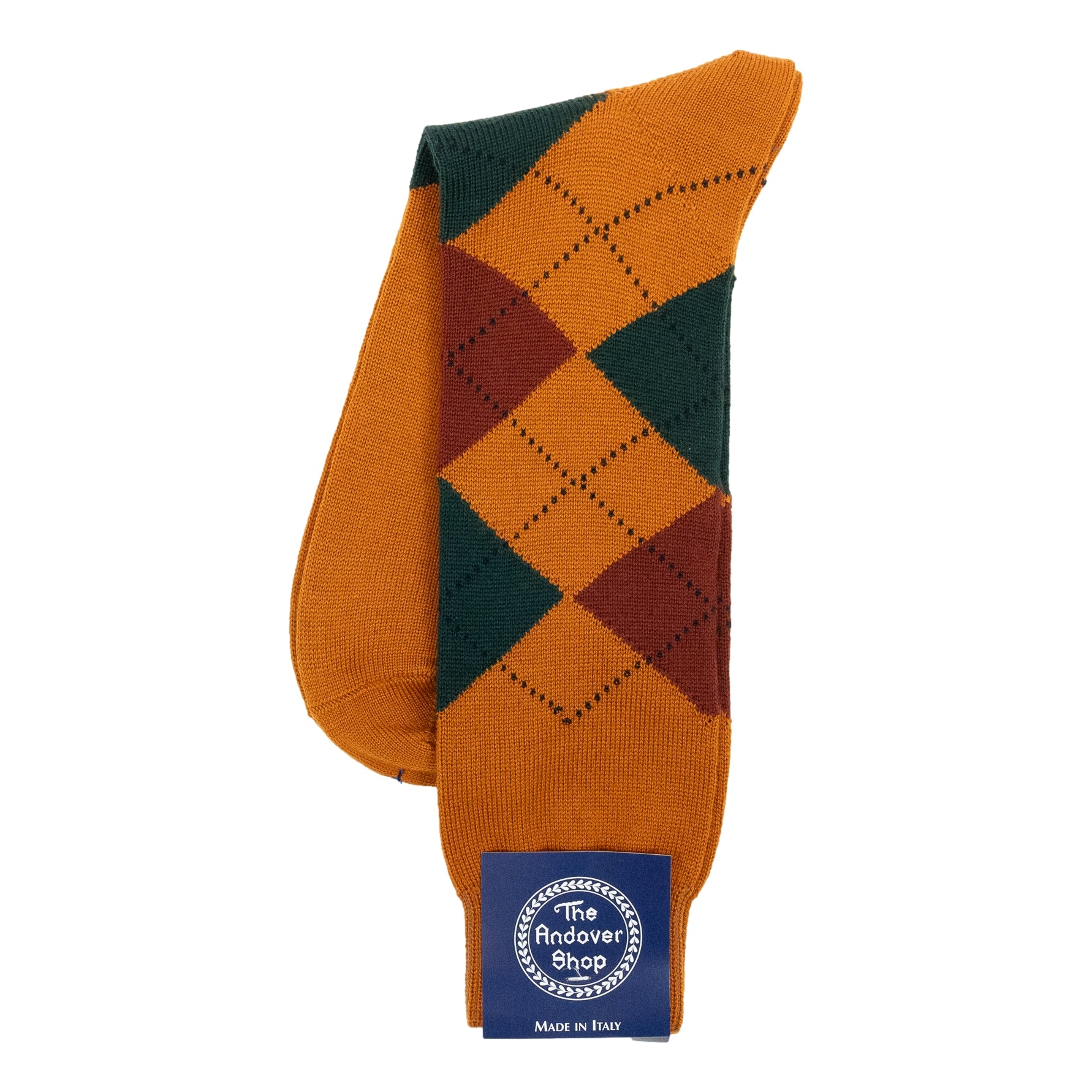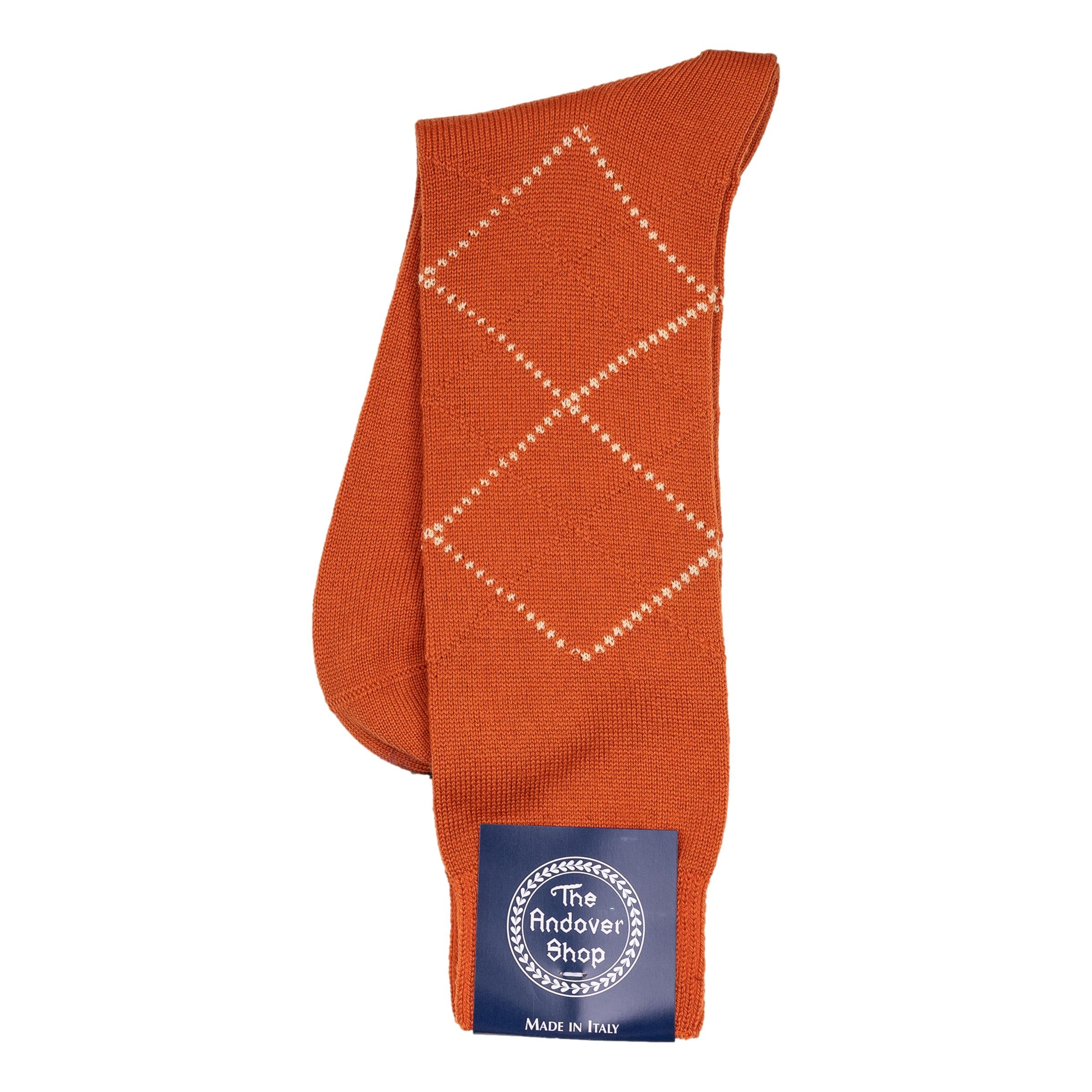 This mid-calf argyle wool dress sock can be worn on any occasion, casual or formal, and is a quintessential staple for any gentleman who enjoys spicing up his wardrobe. Made from fine wool in Italy for The Andover Shop. One size fits most.
