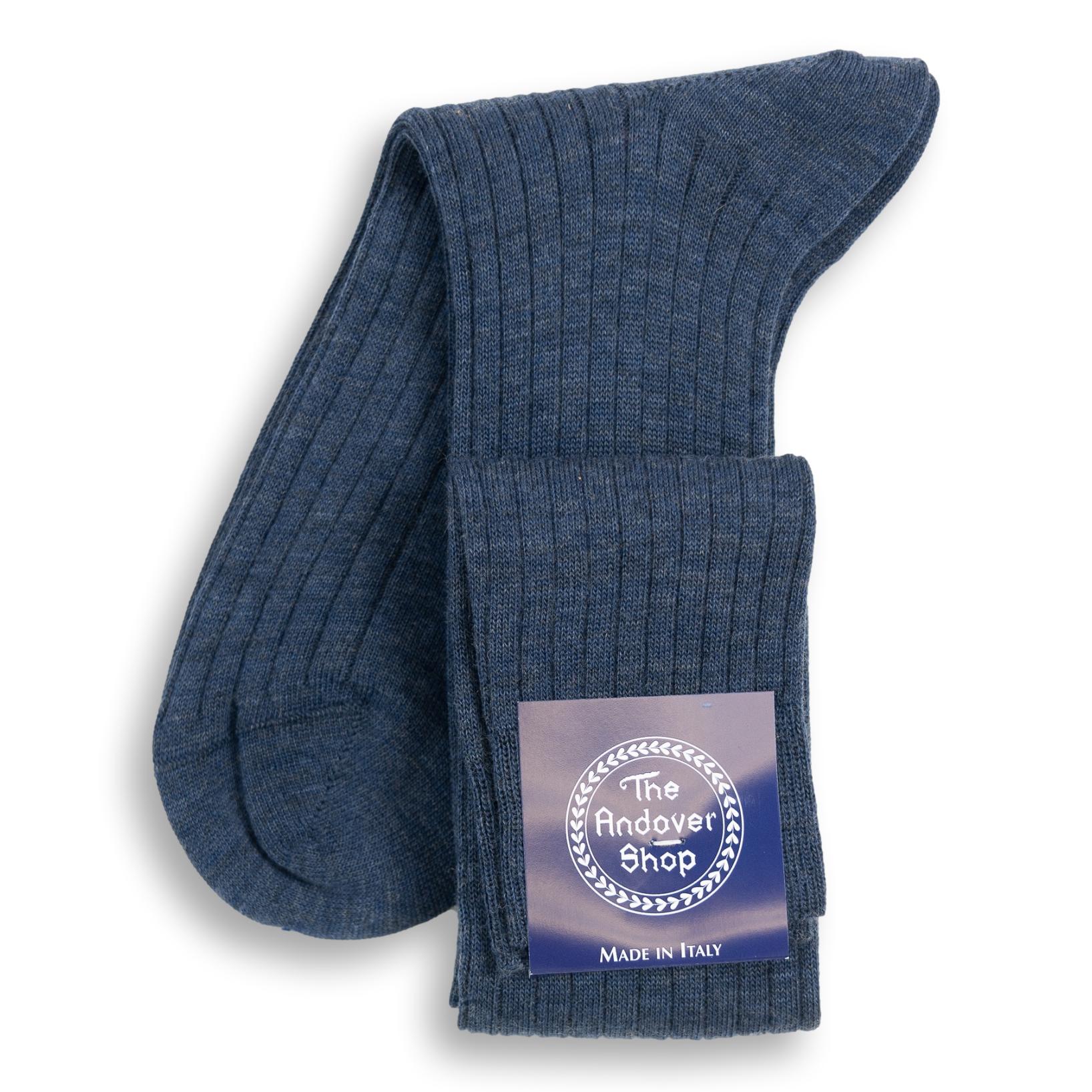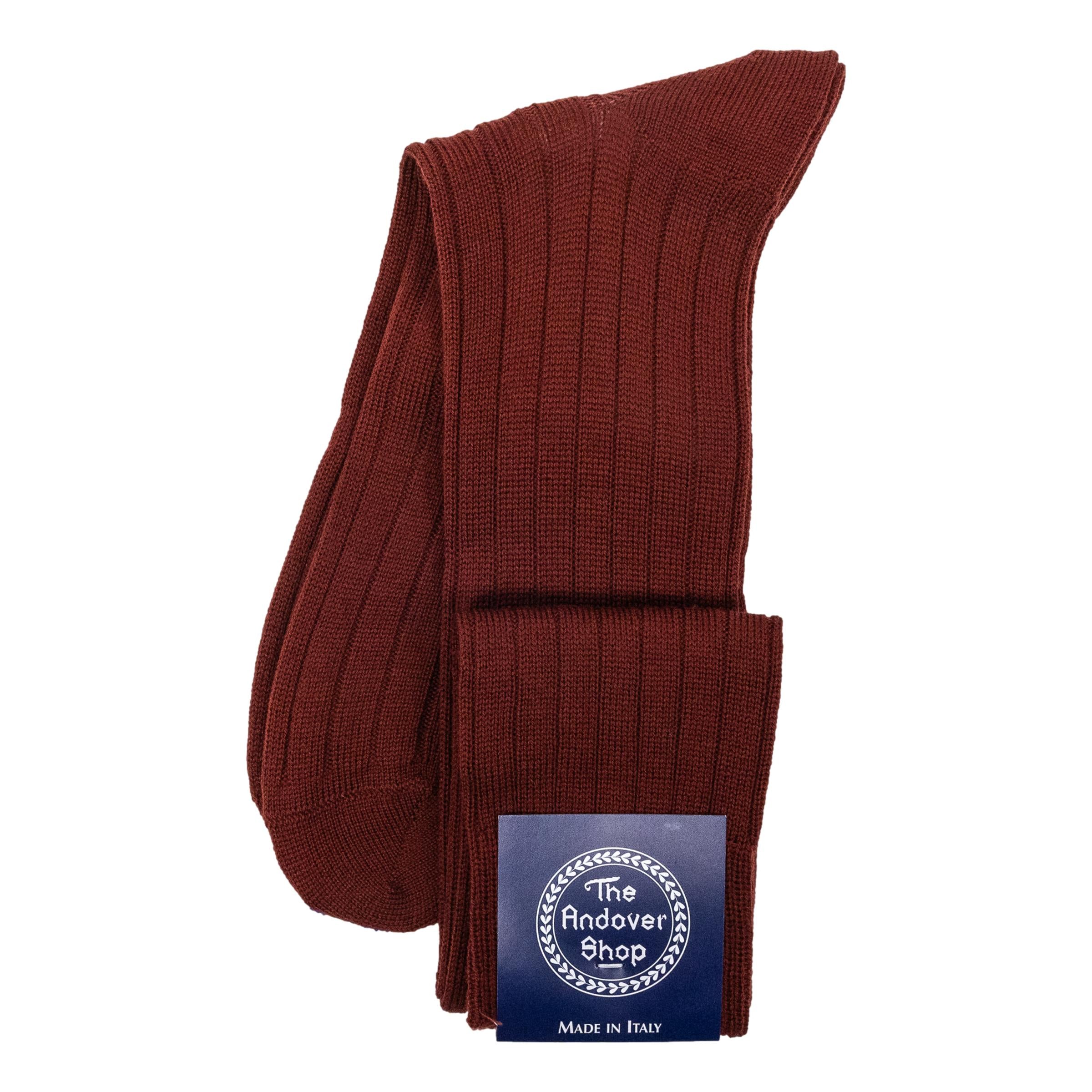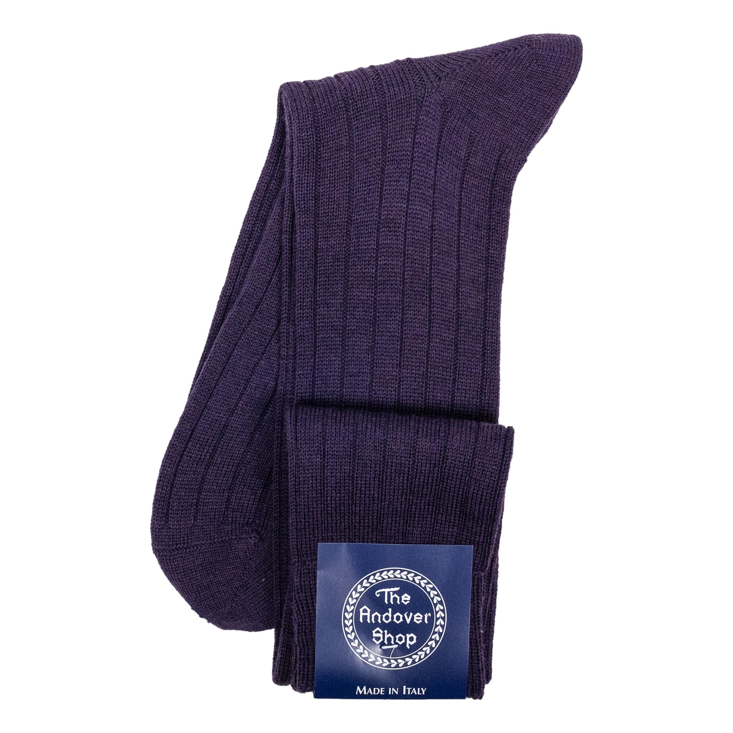 This over the calf wool dress sock can be worn on any occasion, casual or formal, and is a quintessential staple for any gentleman who enjoys spicing up his wardrobe. Made from fine wool in Italy for The Andover Shop. One size fits most. Most colors are 90% wool and 10% nylon.