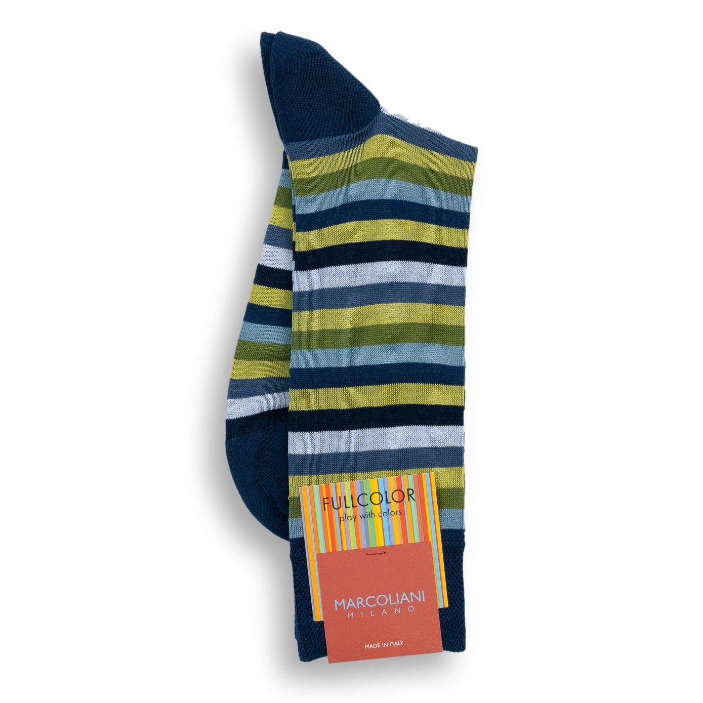 Pima Cotton Rainbow Stripe Mid-Calf Dress Socks