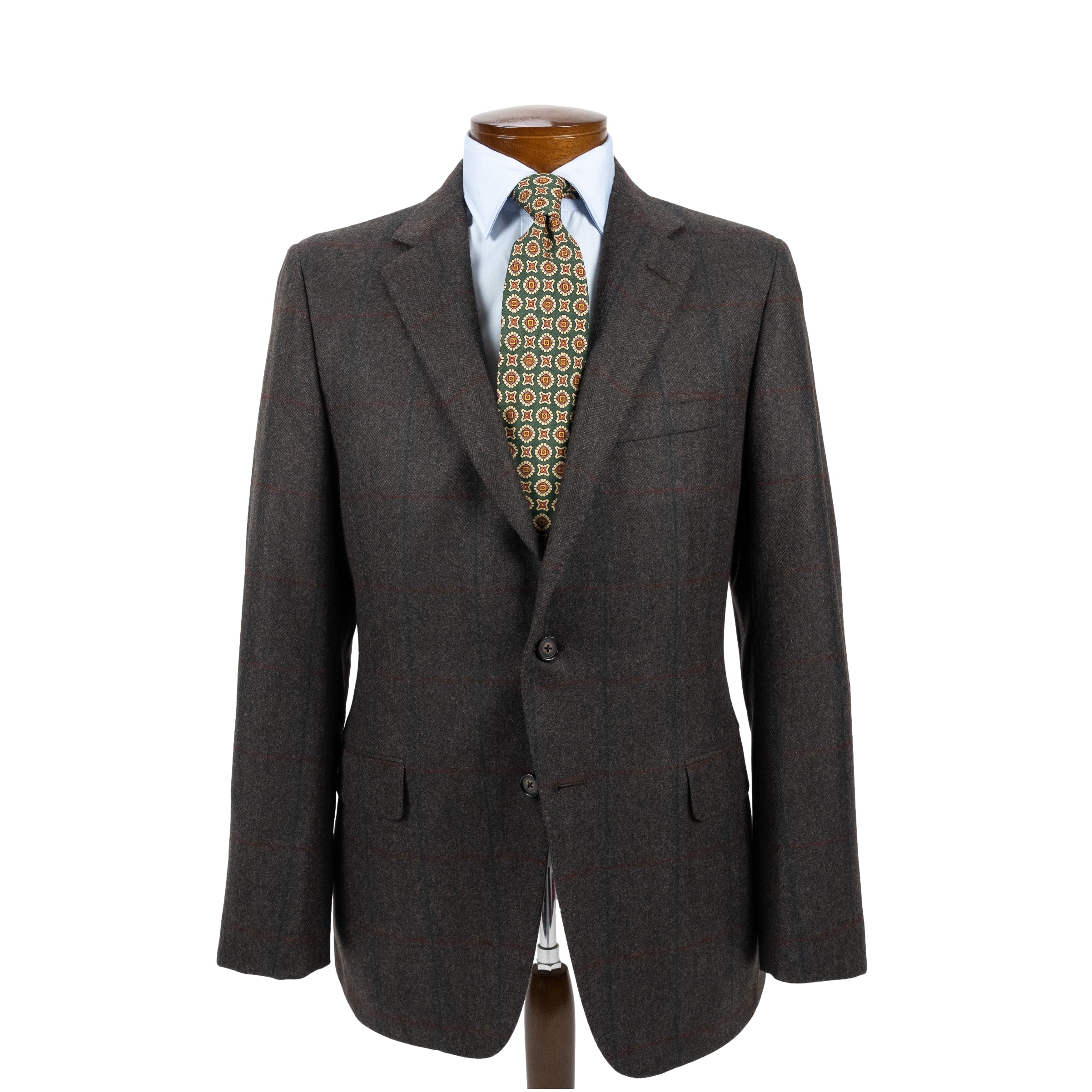 Walnut Herringbone with Pine and Maroon Windowpane Pure Cashmere Sport Coat