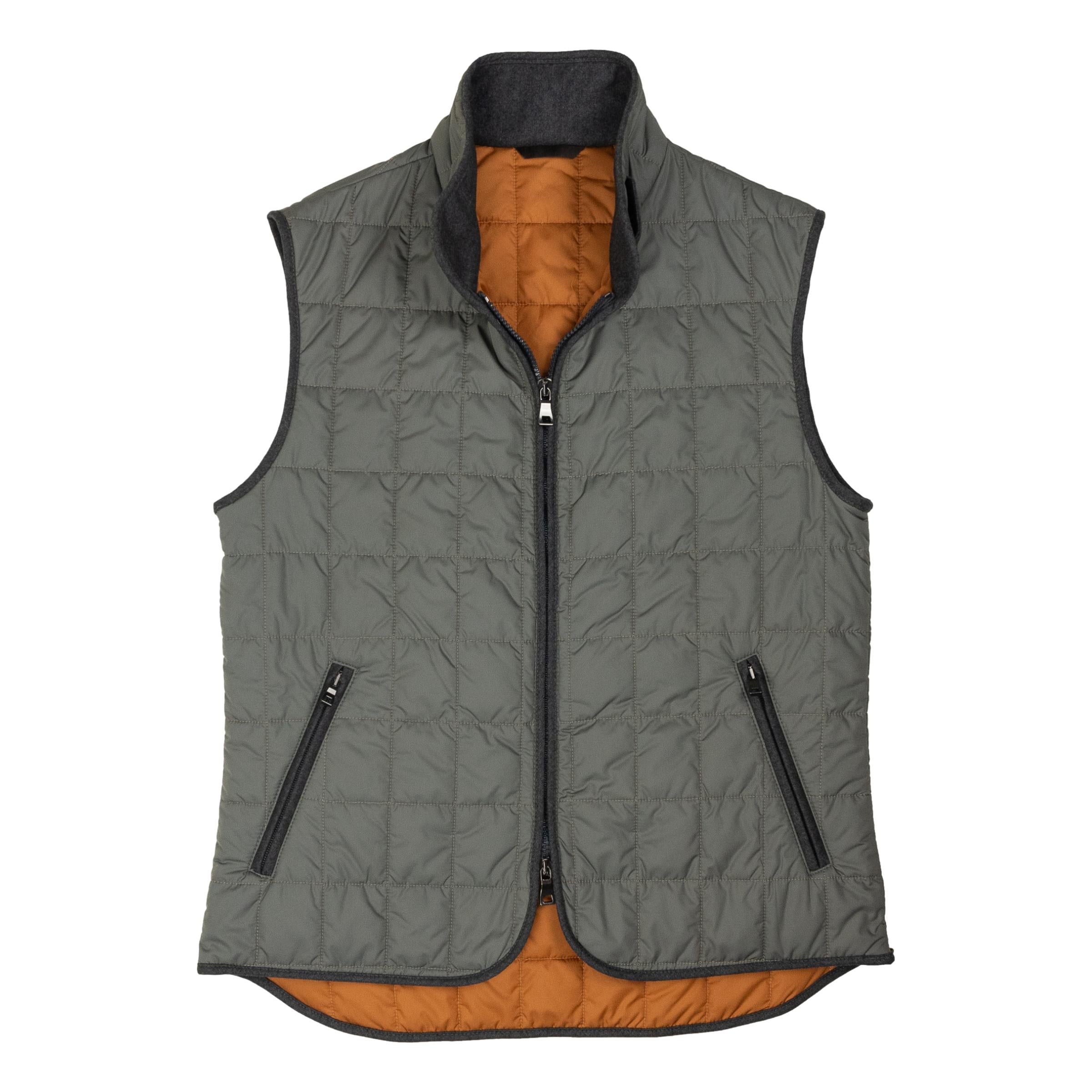 The Waterville Theo quilted vest is made from water resistant nylon and is complete with a 2-way front zipper, zippered hand pockets, and two interior zippered pockets. This lightly quilted vest is designed with versatility in mind and can be worn from early Fall to late Spring. We recommend going one size up from your jacket size. Made in Italy for The Andover Shop using all Italian materials and hardware.