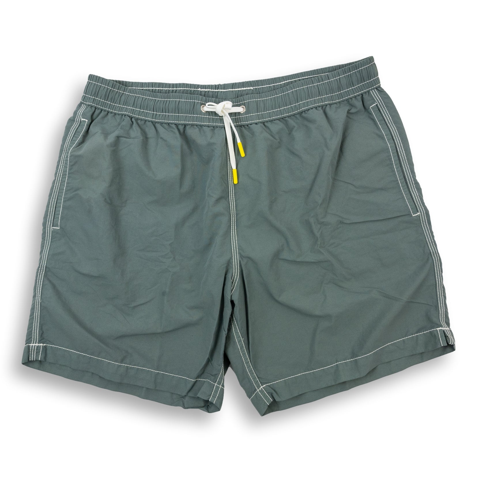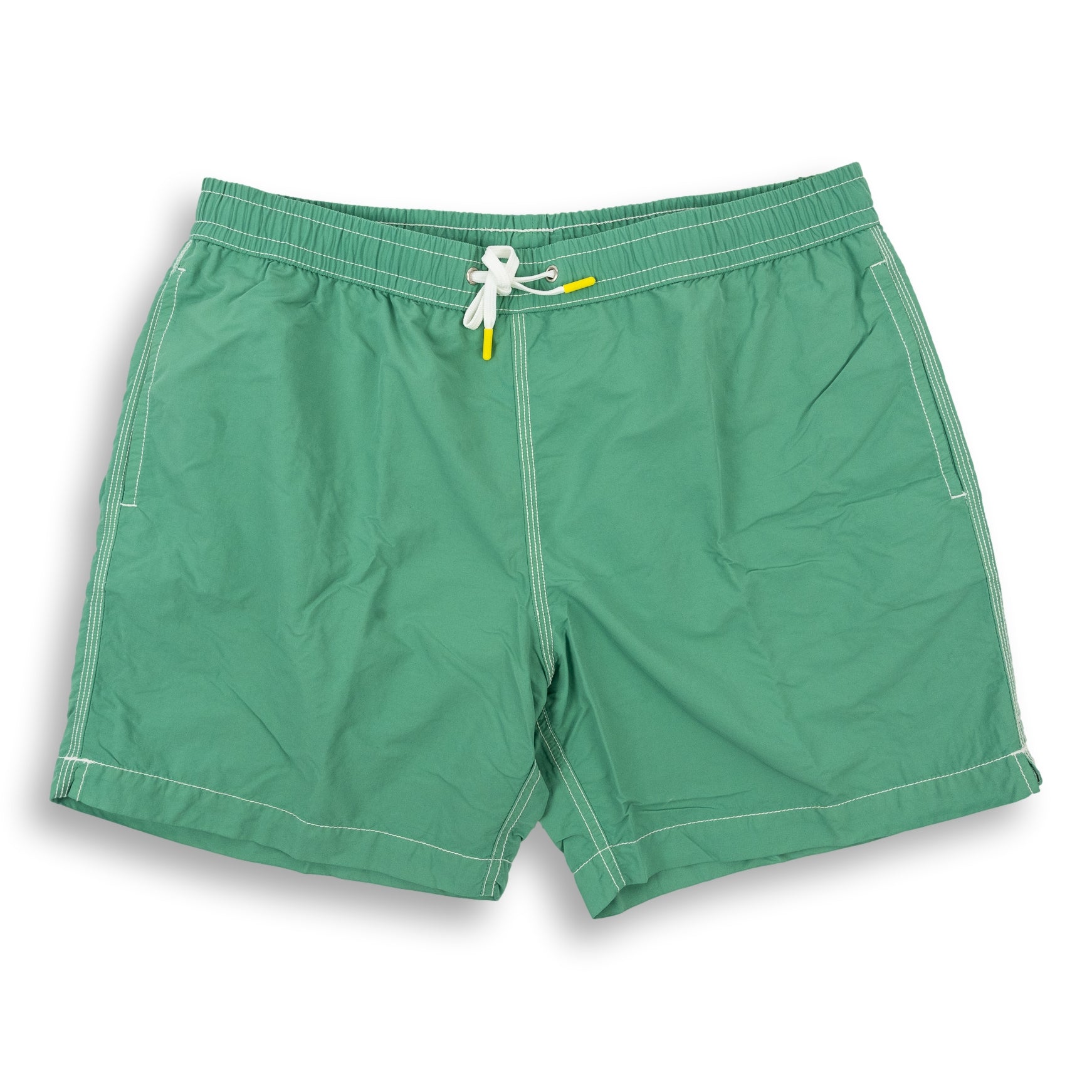 Swimsuit with elastic waistband and drawstrings, side pockets and a back pocket, mid-length cut. It is provided with a storage pocket so it can travel with you anywhere.