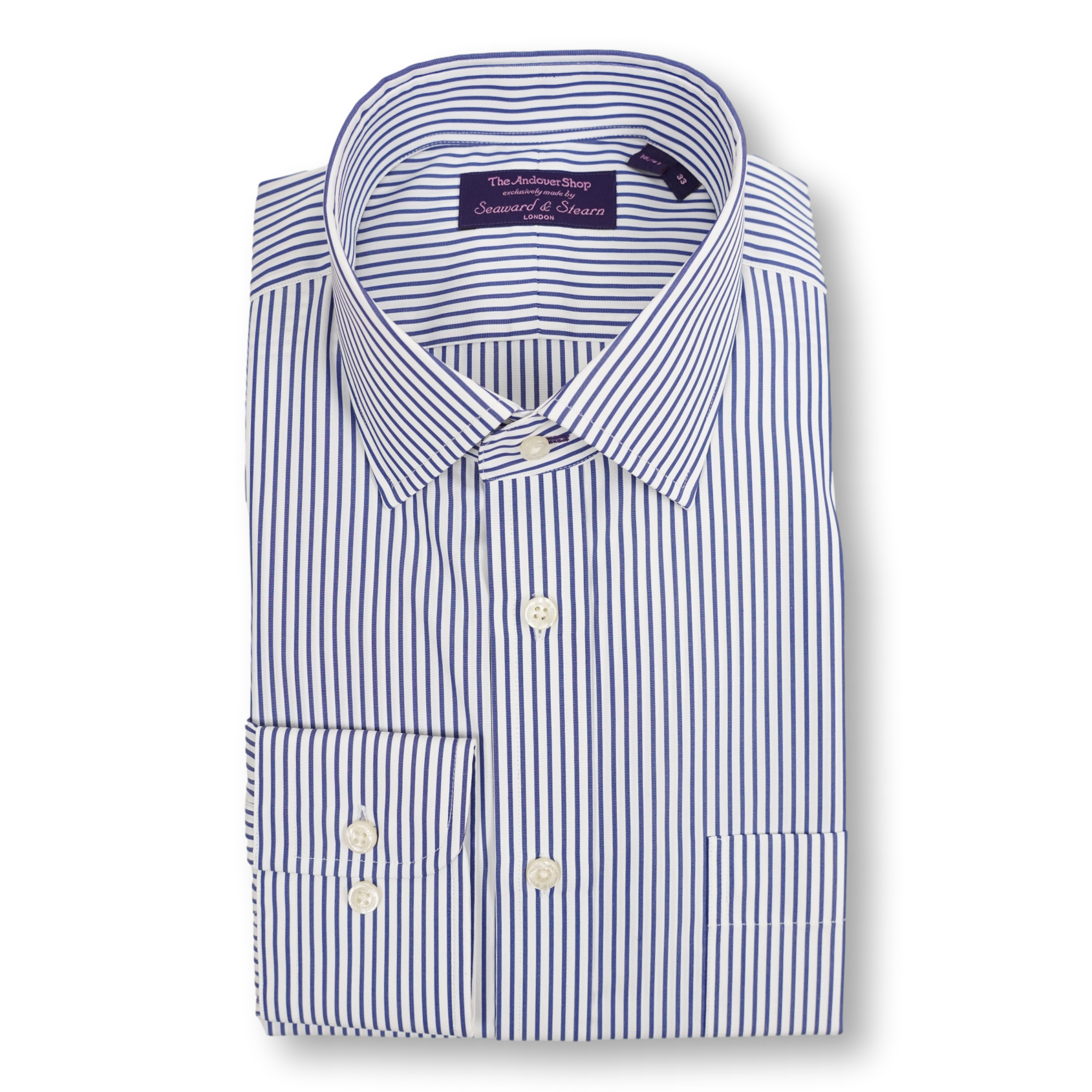 Andover Blue Spread Collar Banker Stripe Dress Shirt