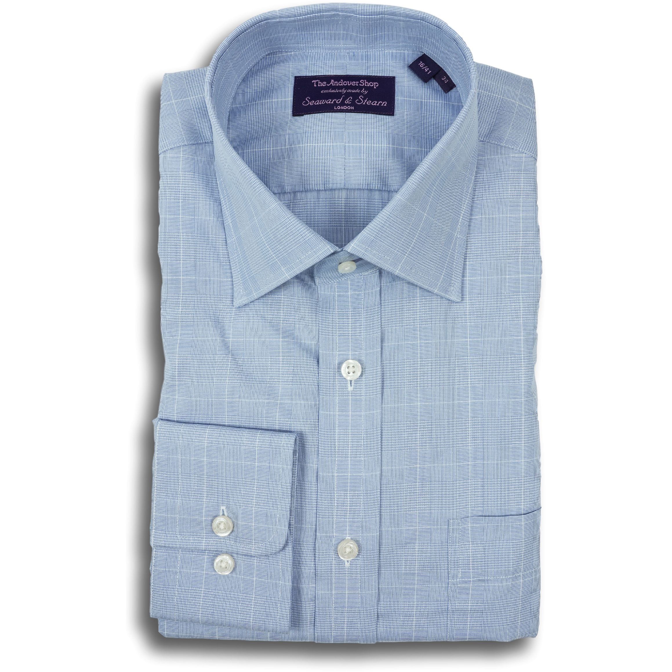 Blue Prince of Wales Spread Collar Dress Shirt