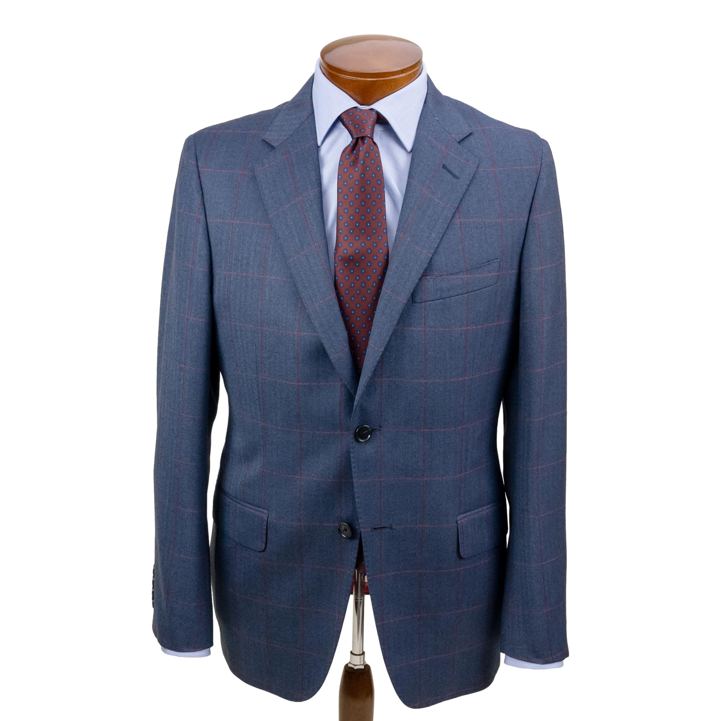 Blue Herringbone with Red Windowpane Lightweight Wool Sport Coat