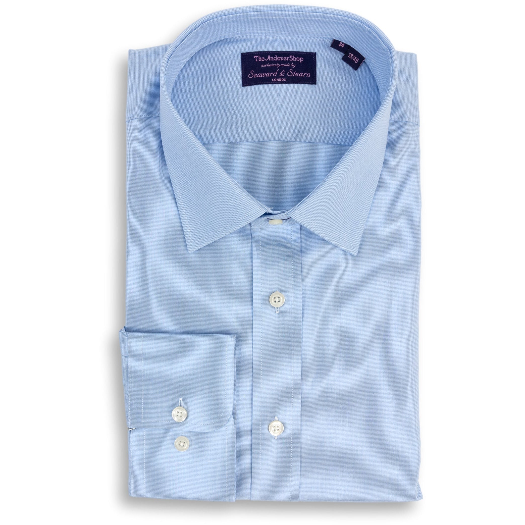 Blue Micro Houndstooth Spread Collar Dress Shirt