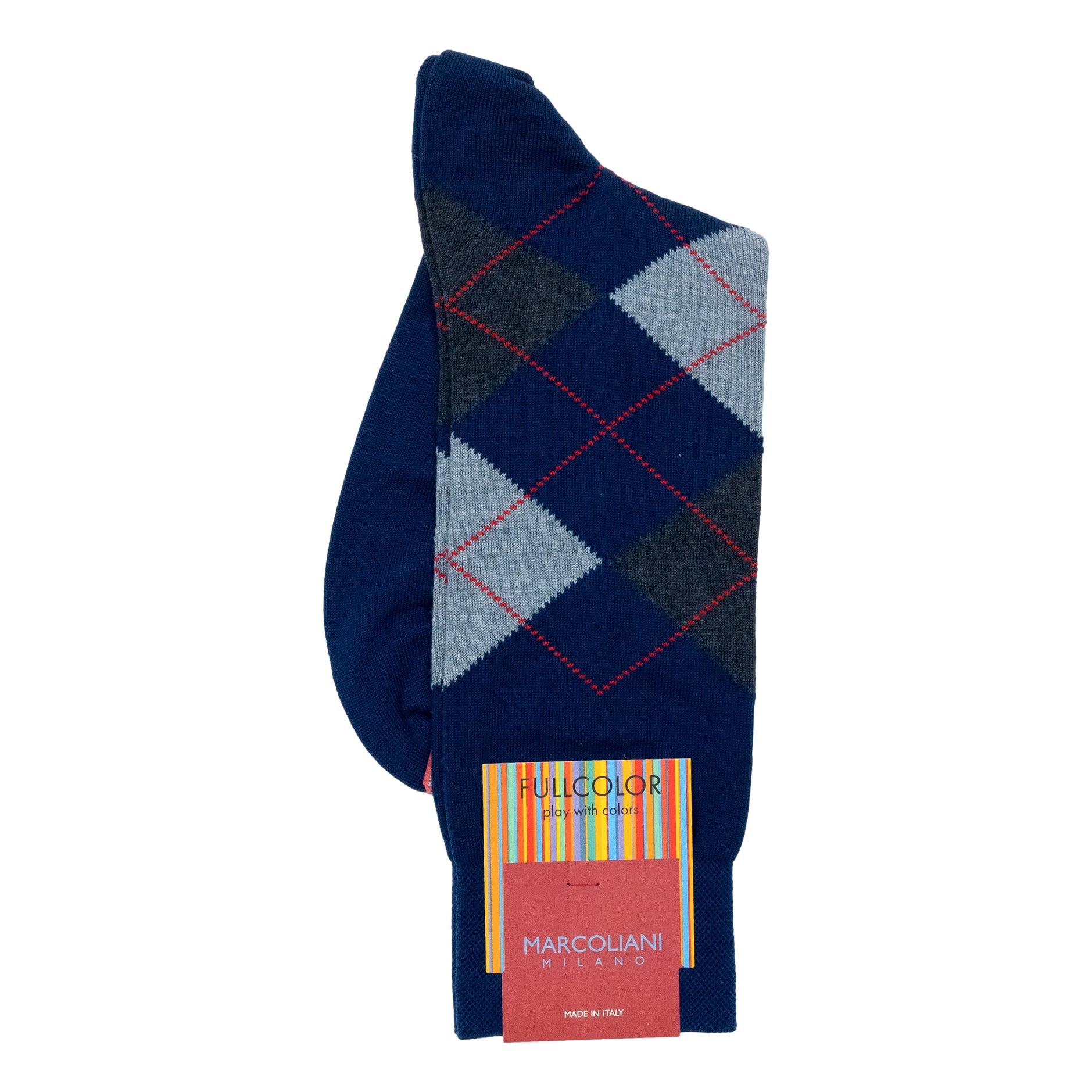 These argyle cotton dress sock elegantly fuses timeless style with comfort. Its refined diamond-shaped pattern, woven in various shades, adds a touch of sophistication to formal attire. Crafted from soft and breathable cotton, this sock combines fashion and function, making it the perfect accessory for upscale occasions.
