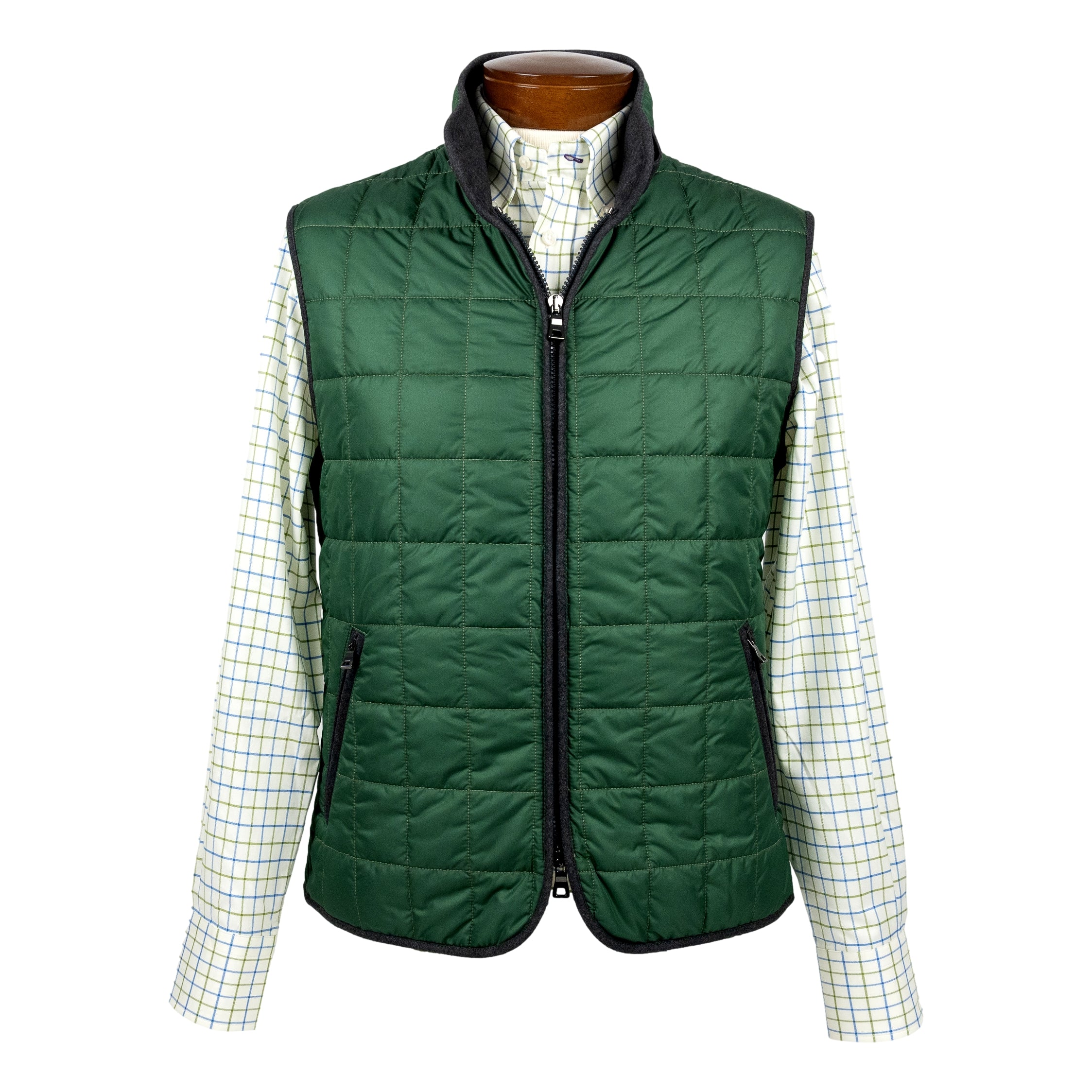 The Waterville Theo quilted vest is made from water resistant nylon and is complete with a 2-way front zipper, zippered hand pockets, and two interior zippered pockets. This lightly quilted vest is designed with versatility in mind and can be worn from early Fall to late Spring. We recommend going one size up from your jacket size. Made in Italy for The Andover Shop using all Italian materials and hardware.