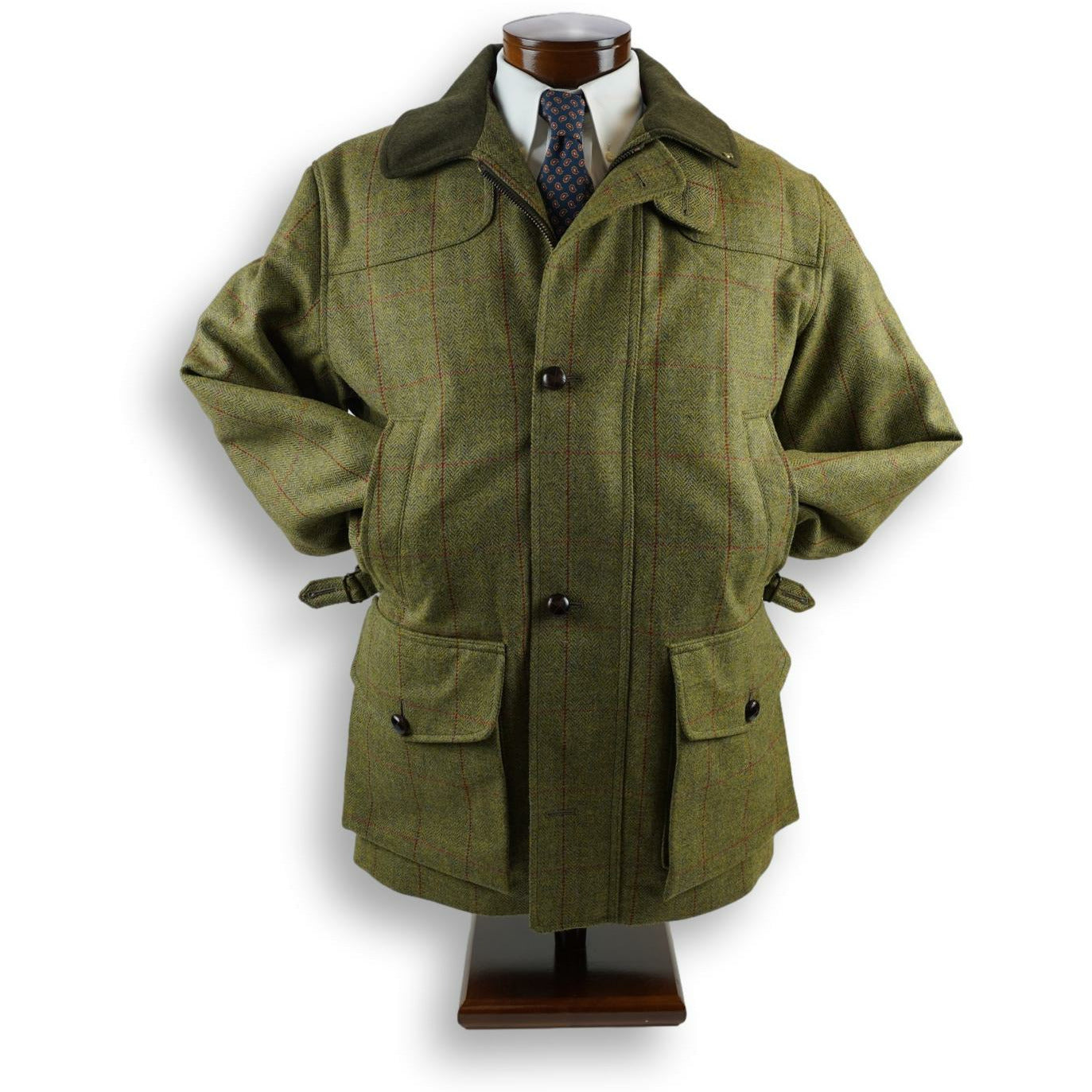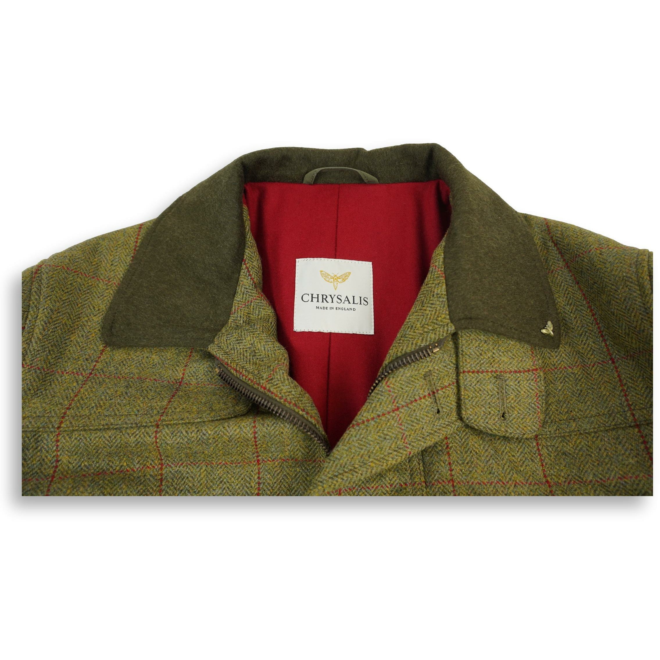 At home in the field or suitably stylish for city living, the Chepstow is a modern fit field coat. Made from the finest British tweed, the attention to design and functionality ensure the wearer is warm, dry and comfortable at all times. This Jacket is a custom Andover Shop design specially made for our shop. It features a wool red lining and Loden top collar with olive alcantara trim, storm cuffs, and leather buttons.