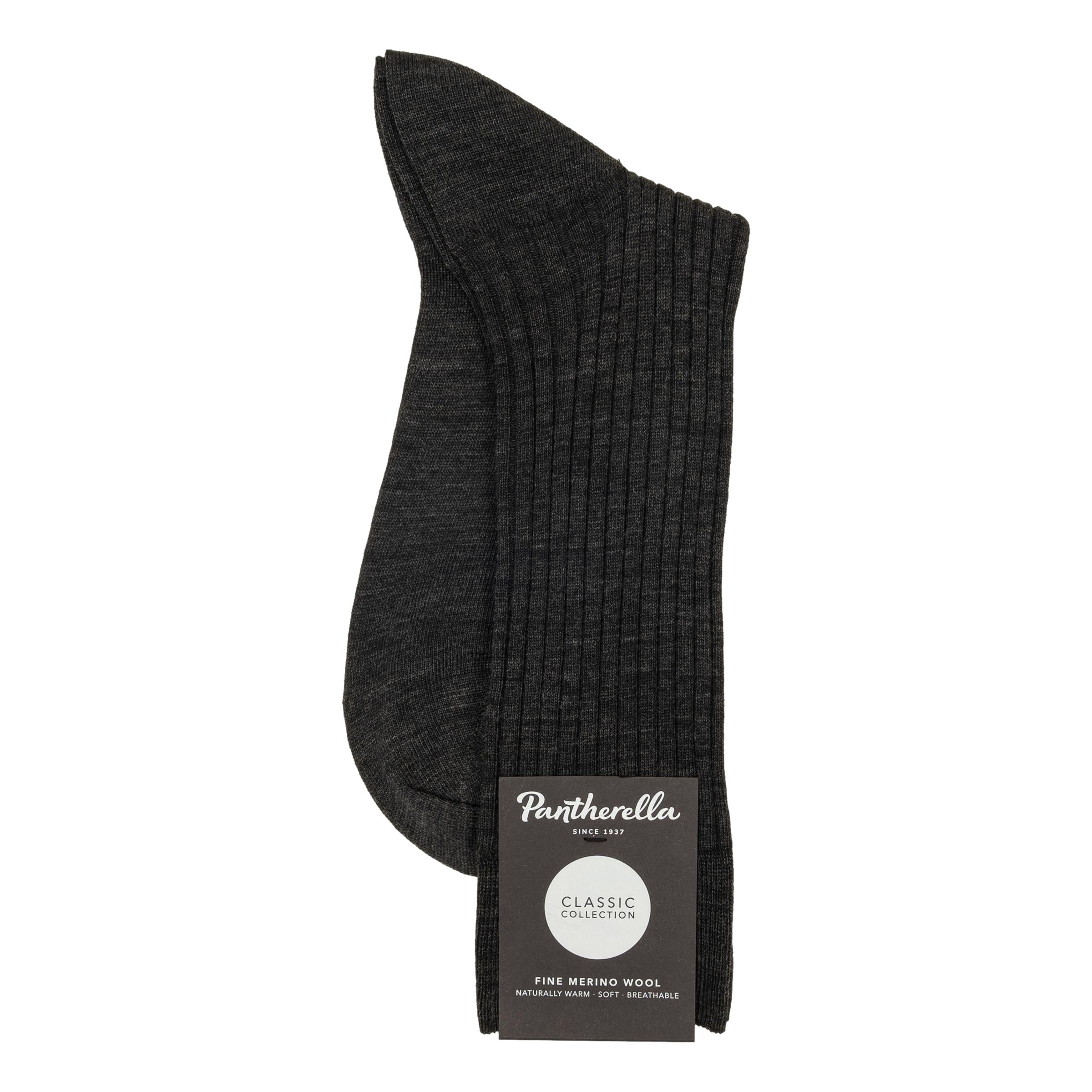 The right pair of socks can make or break a workday outfit in comfort and style. Made in England, this finer men’s sock is warm, soft and breathable with 70% fine merino wool and 30% nylon. The classic ribbed design sits at the calf, and the neutral hue helps refine business looks formal and casual. Seamless toe. Hand finished. Made by Pantherella.
