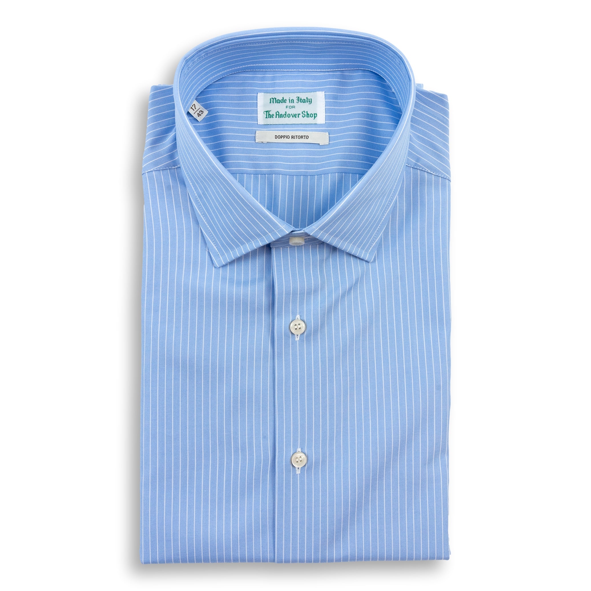 Light Blue with White Fine Stripe Spread Collar Dress Shirt