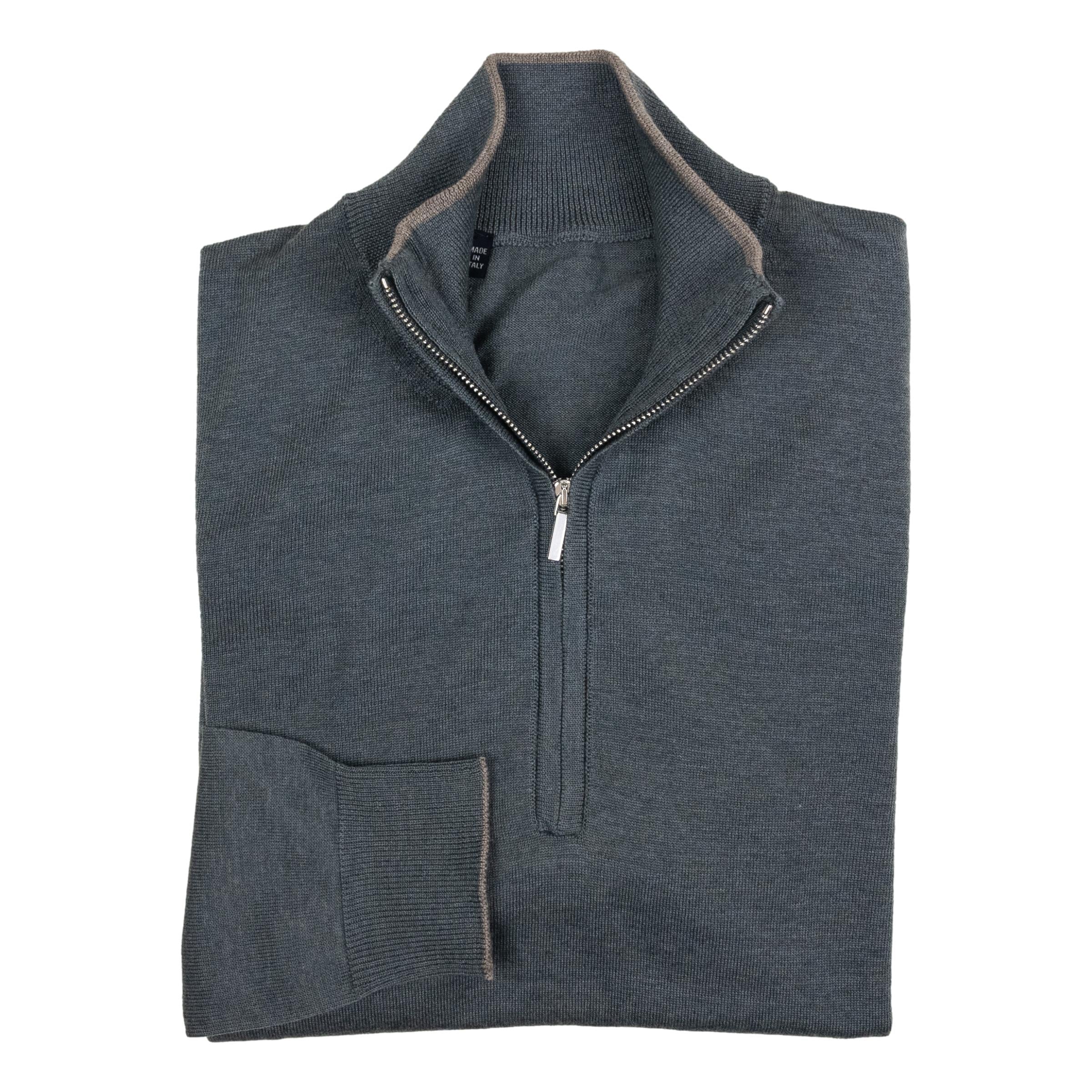 Enhance your fall wardrobe with our 100% Merino Wool Quarter Zip Knit Sweater, crafted in Italy exclusively for The Andover Shop. Made from the finest virgin wool, this sweater offers a luxurious yet lightweight feel, providing incredible warmth without bulk.