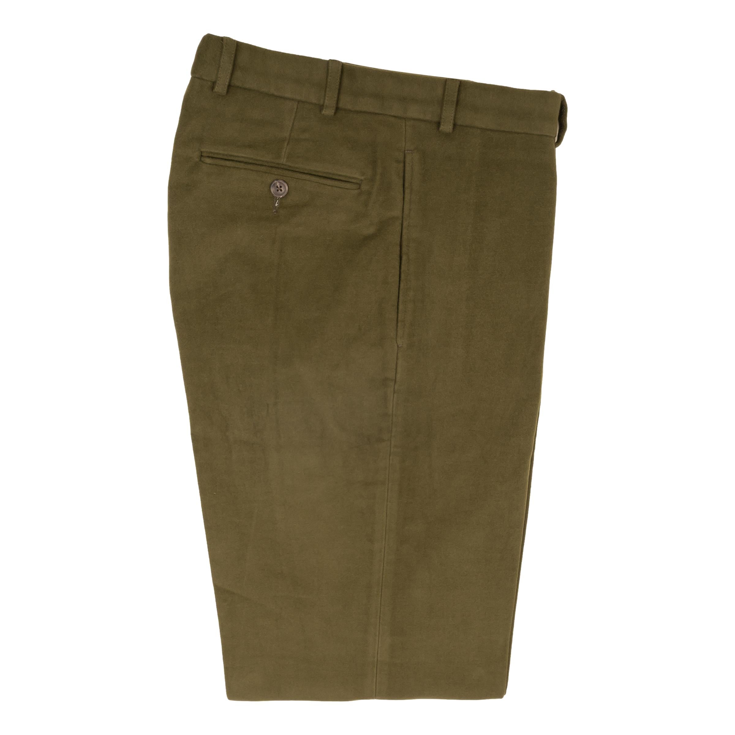 Our Moleskin trousers are the ideal pants for fall and winter. They can be paired with a sweater for a more relaxed look or worn with a button up for a more upscale look. Made from 100% cotton Brisbane Moss moleskin specifically for The Andover Shop.
