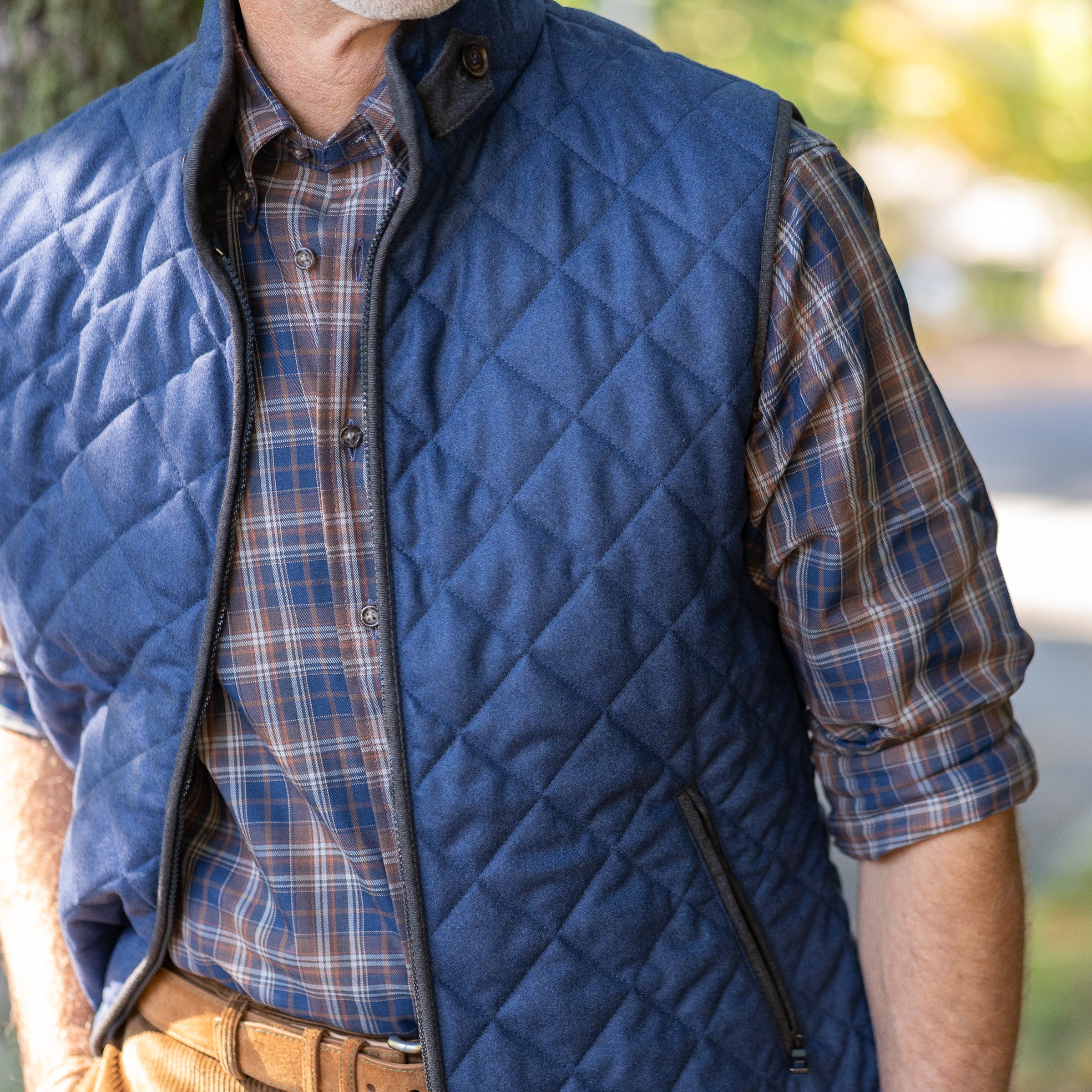 This traditional fit long sleeve button-down Viyella collection shirt is made from 80% cotton and 20% wool. The brushed finish creates a soft and warm feel and the classic tattersall style is great for any fall or winter evening. Classic Fit. Button Down. Made in Canada for The Andover Shop.