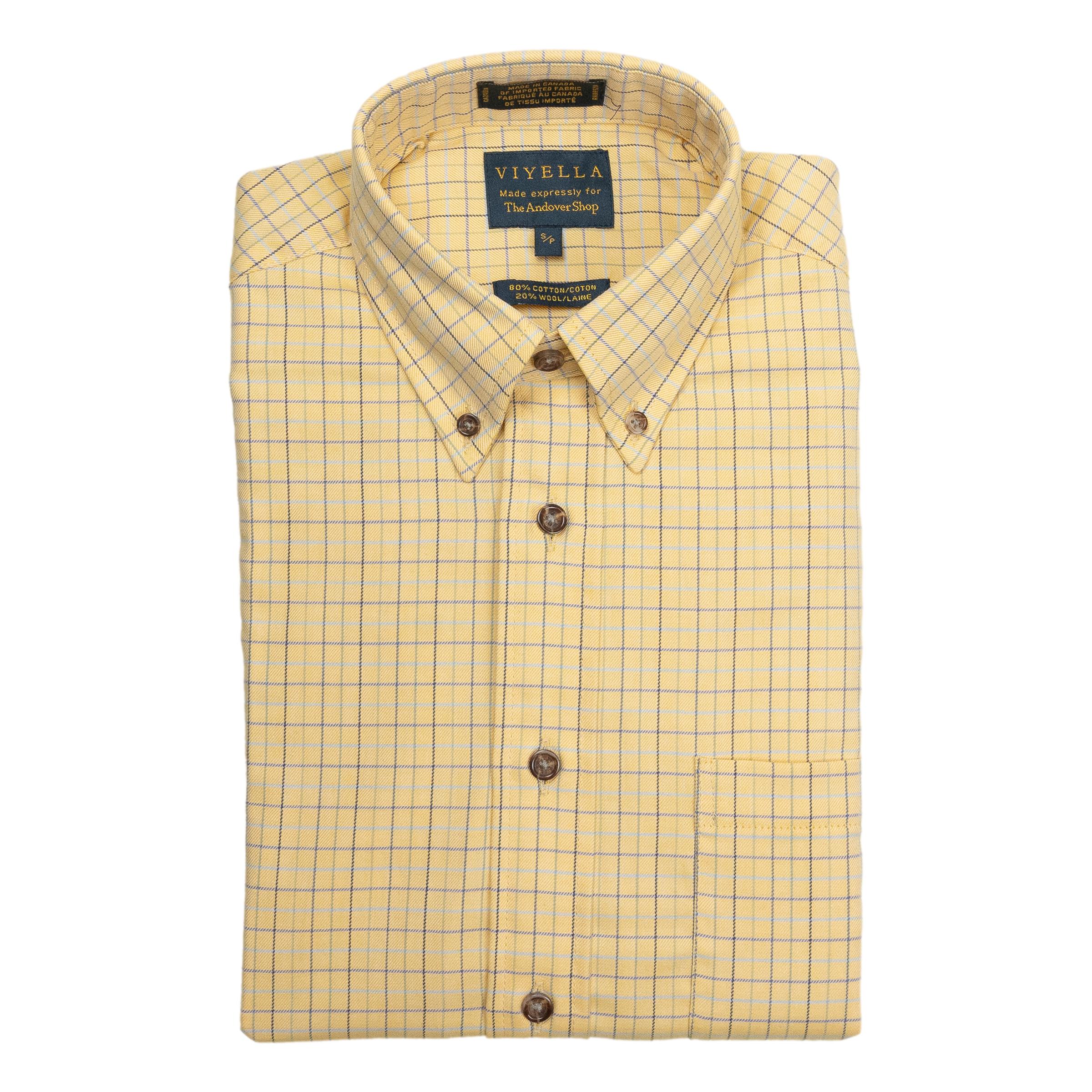 This traditional fit long sleeve button-down Viyella collection shirt is made from 80% cotton and 20% wool. The brushed finish creates a soft and warm feel and the classic tattersall style is great for any fall or winter evening. Classic Fit. Button Down. Made in Canada for The Andover Shop.