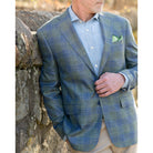 Green with Blue Plaid Wool, Silk, Linen Sport Coat