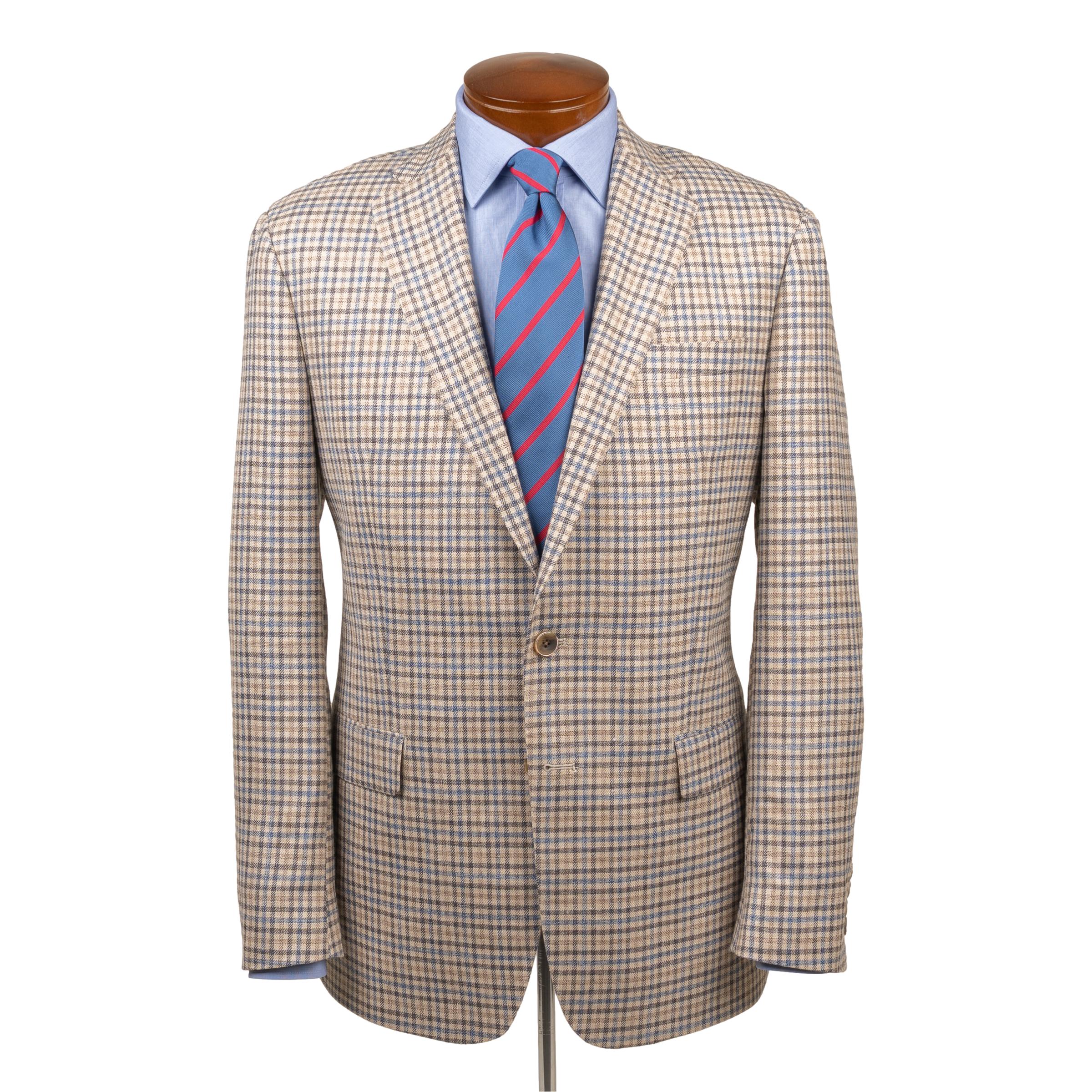 Beige, Blue, and Brown Wool, Silk, and Linen Sport Coat
