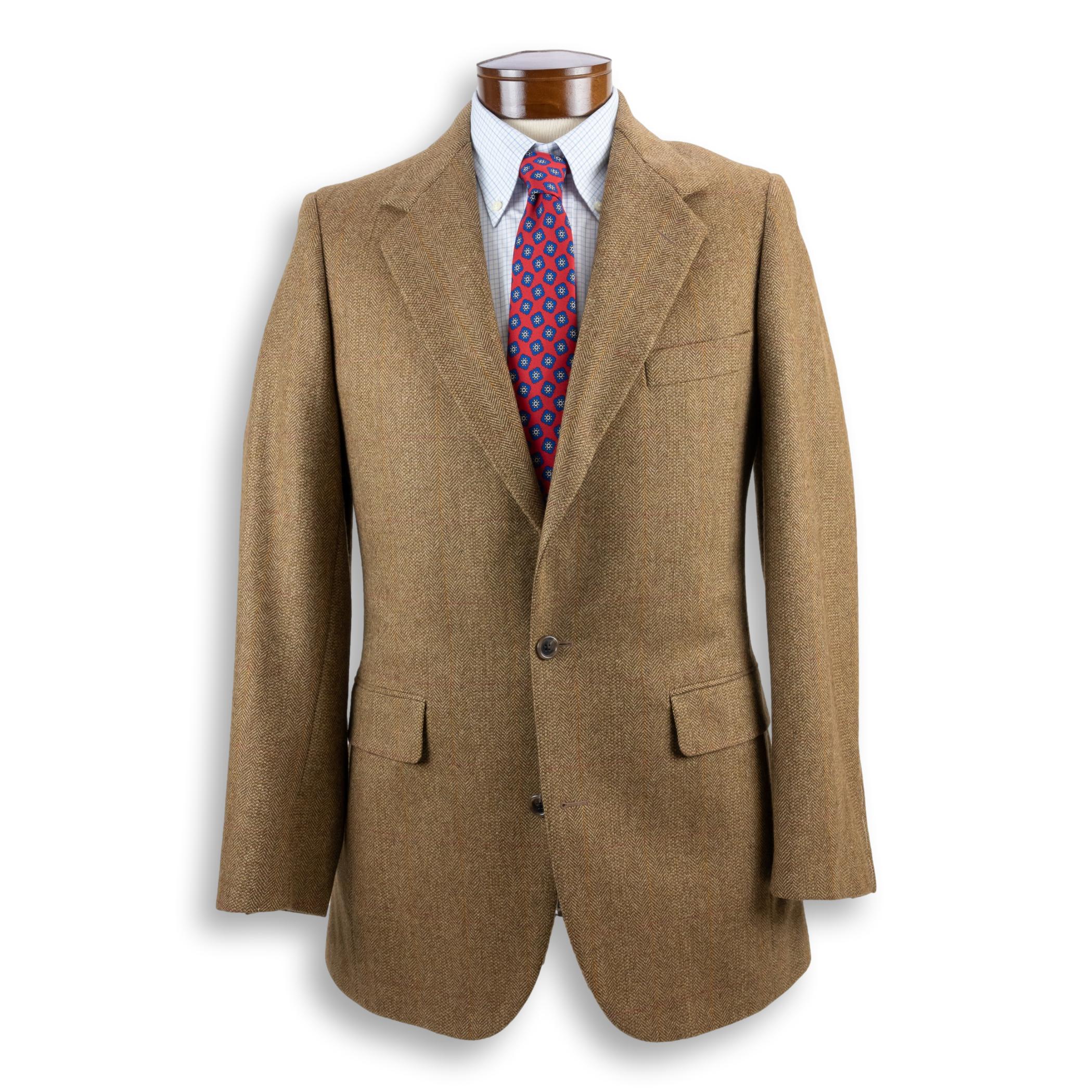 The Light Tan with Subtle Red and Light Orange Windowpane Sport Coat is a versatile jacket for many different occasions. The jacket is a two button, un-darted, side vent with two flap hip pockets. 100% wool. Made in the USA for The Andover Shop.