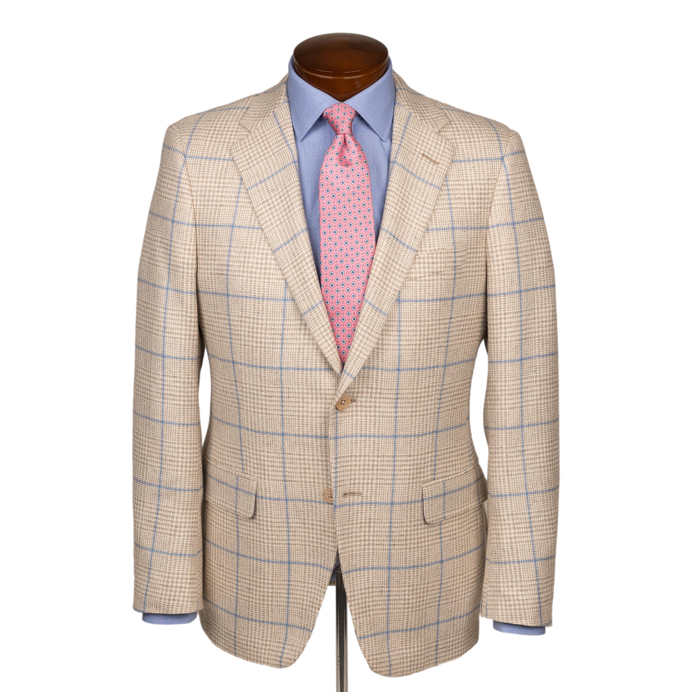 Natural and Light Blue Windowpane Wool, Silk, and Linen Sport Coat