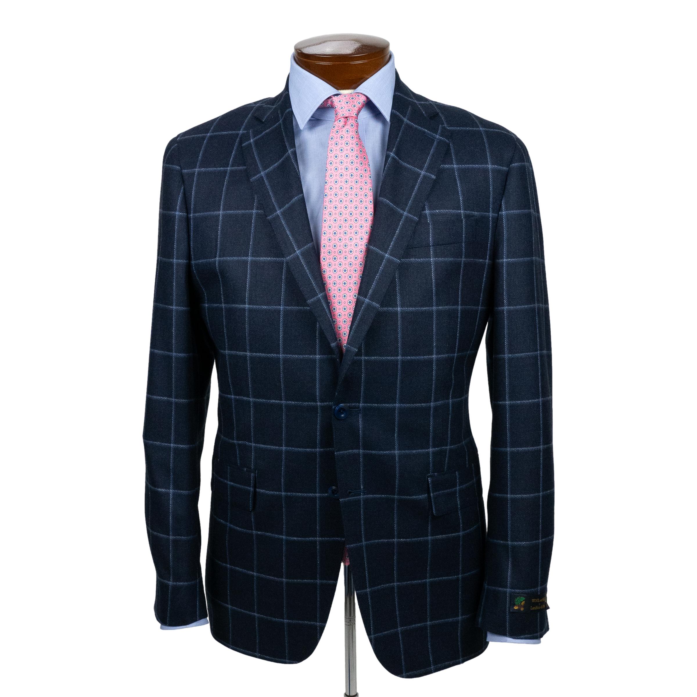 Navy with Light Blue Windowpane Wool and Silk Sport Coat