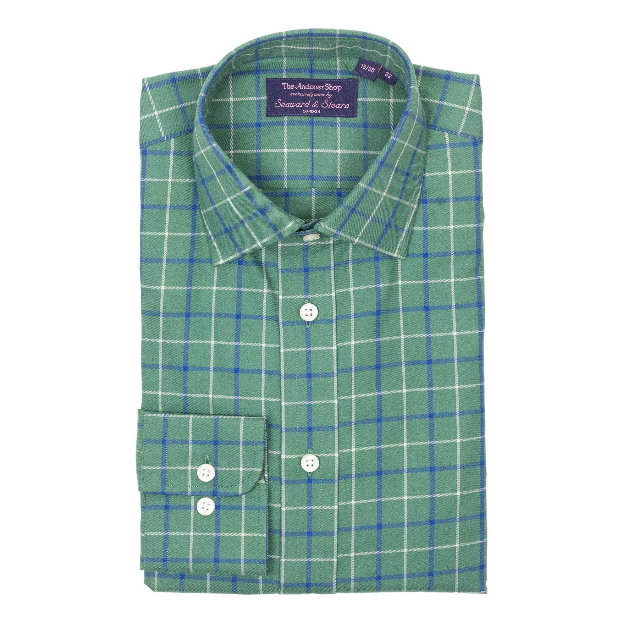 Green Ground with White and Blue Tattersall Spread Collar Dress Shirt