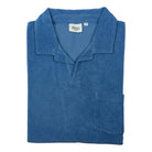 Men's terry polo with short sleeves, chest pocket and open collar. This polo is garment-dyed, giving the color a subtle, washed effect and softening the feel. A timeless revisited in a quintessential summer fabric. Terry cotton knit. Stretchy and lightweight, this fabric has a terrycloth look thanks to the little loops on the top. Made in Portugal.