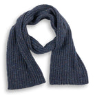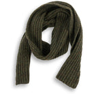 Made in Ireland for The Andover Shop. Unisex. A simple rib stitch scarf made from a blend of 95% wool, 5% cashmere for an even softer, more luxurious feel to cosy into, guaranteed to keep you cosy against in the elements. A warm green marl colour with flecks of reds, oranges, greens and yellows. 19 cm x 184 cm.