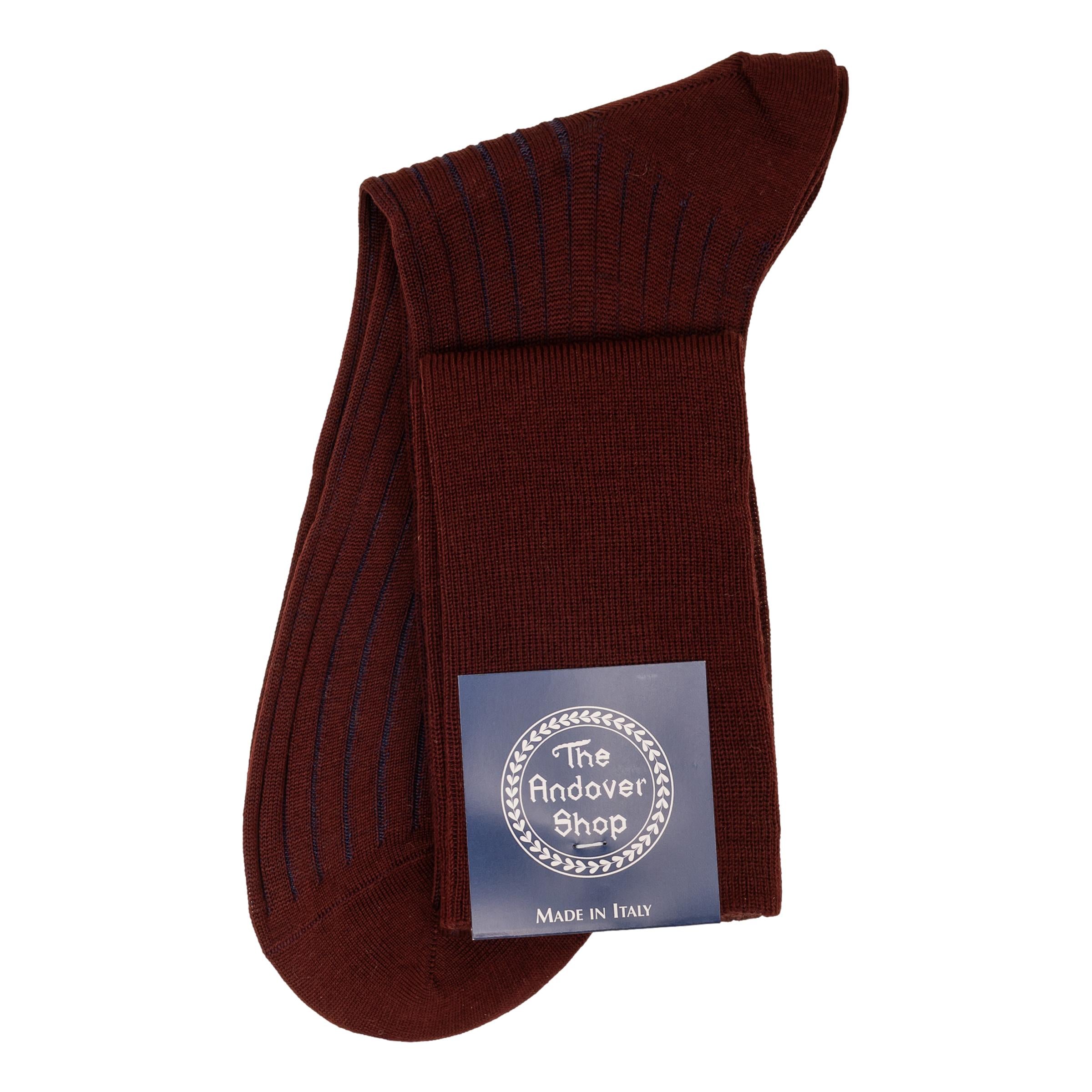 This over the calf wool dress sock can be worn on any occasion, casual or formal, and is a quintessential staple for any gentleman who enjoys spicing up his wardrobe. Made from fine wool in Italy for The Andover Shop. One size fits most. Most colors are 60% wool, 25% cotton and 15% nylon.