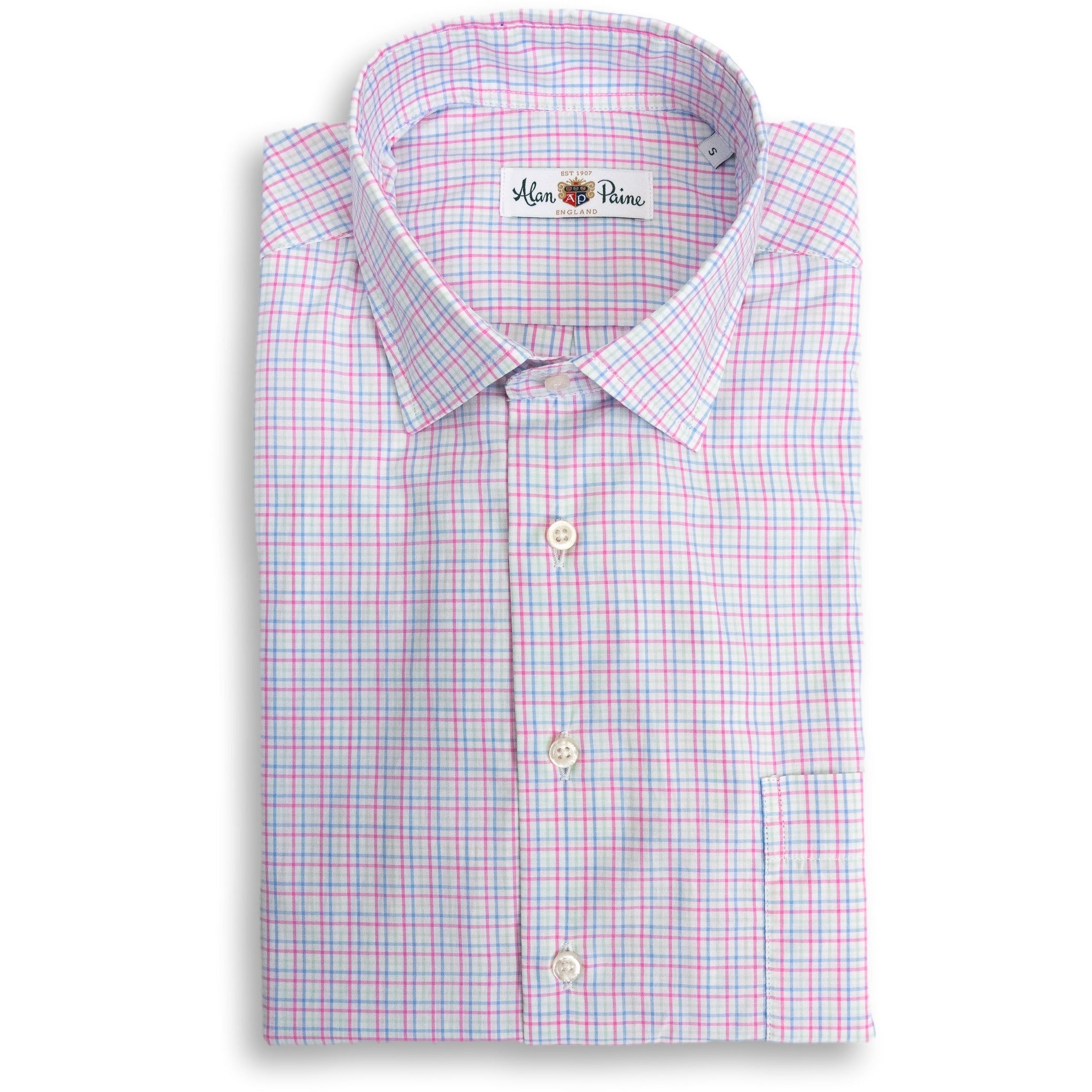 Light Blue, Green, and Pink Tattersall Spread Collar Sport Shirt