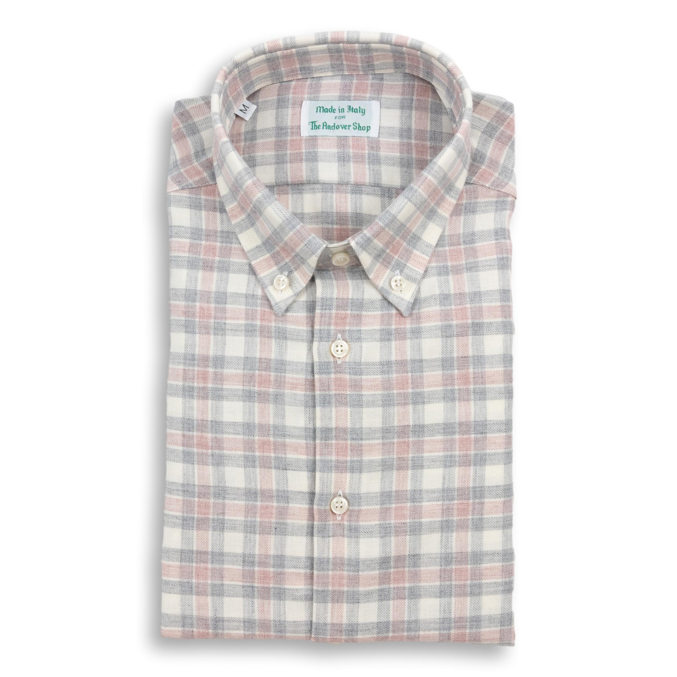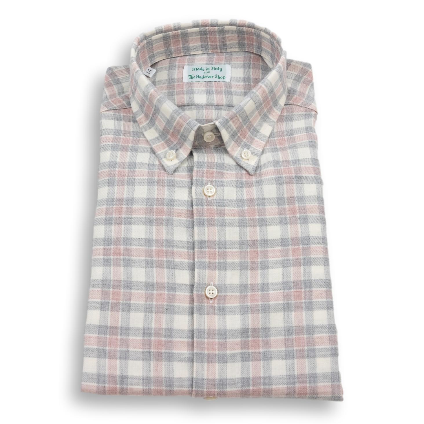 Pink and Grey Plaid Brushed Cotton Sport Shirt