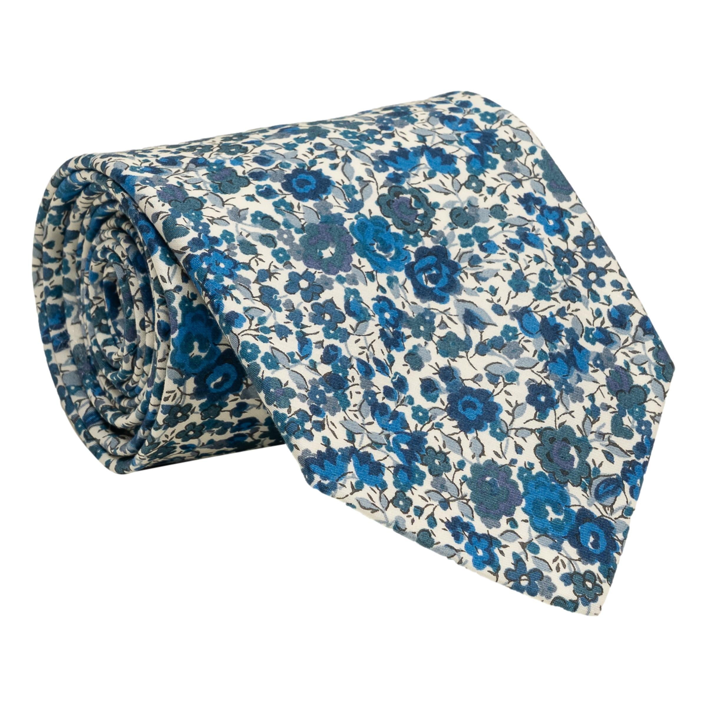 Sky Blue with White and Andover Blue Repp Stripe Silk Tie