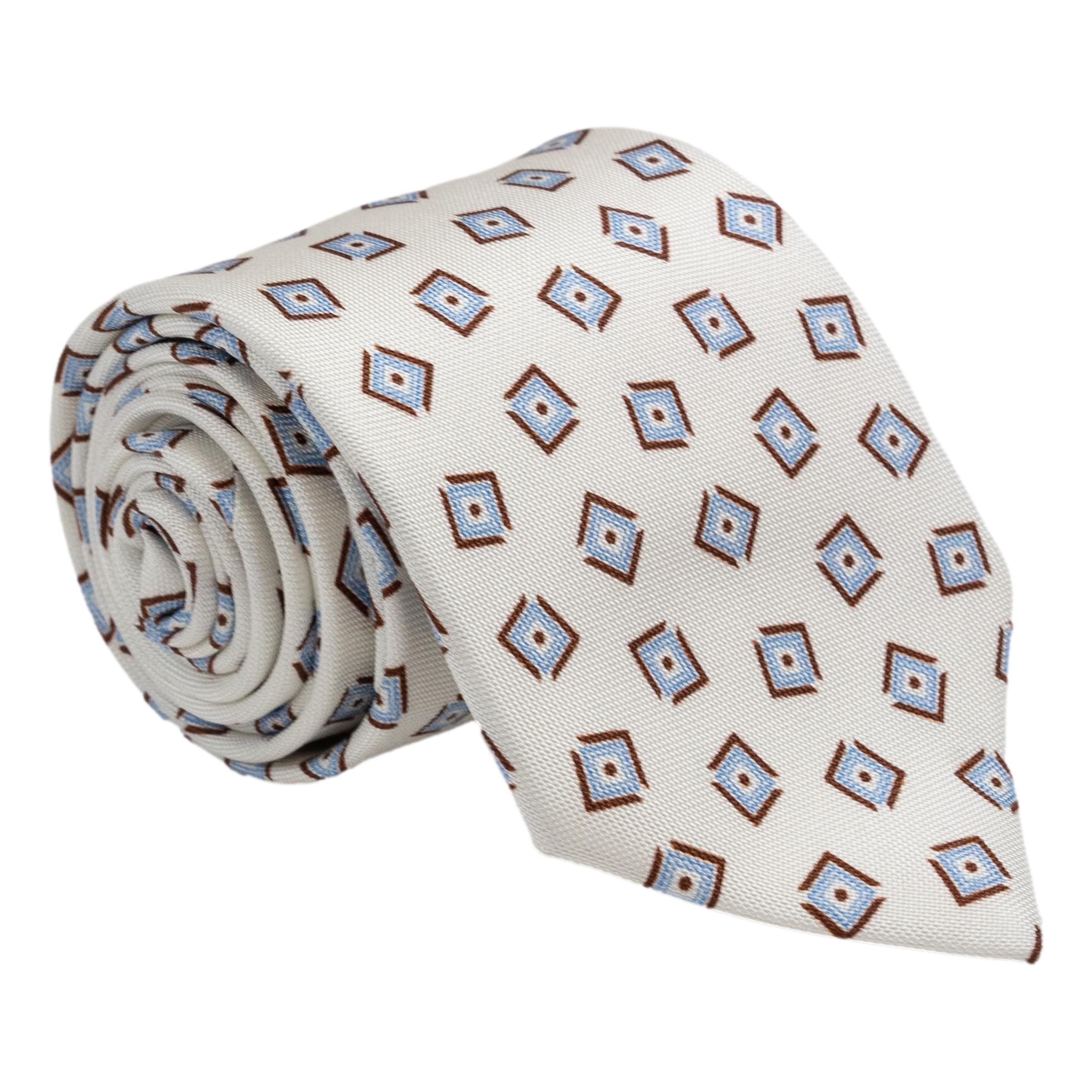 The Abstract Square Motif Silk Tie is an exquisite accessory meticulously handcrafted in Italy exclusively for The Andover Shop. Made from 100% premium silk, this tie exudes luxury and sophistication. Its design features a unique square pattern, adding a touch of elegance and flair to any formal or semi-formal attire. Perfectly crafted with attention to detail, this tie is a timeless addition to any gentleman's wardrobe.