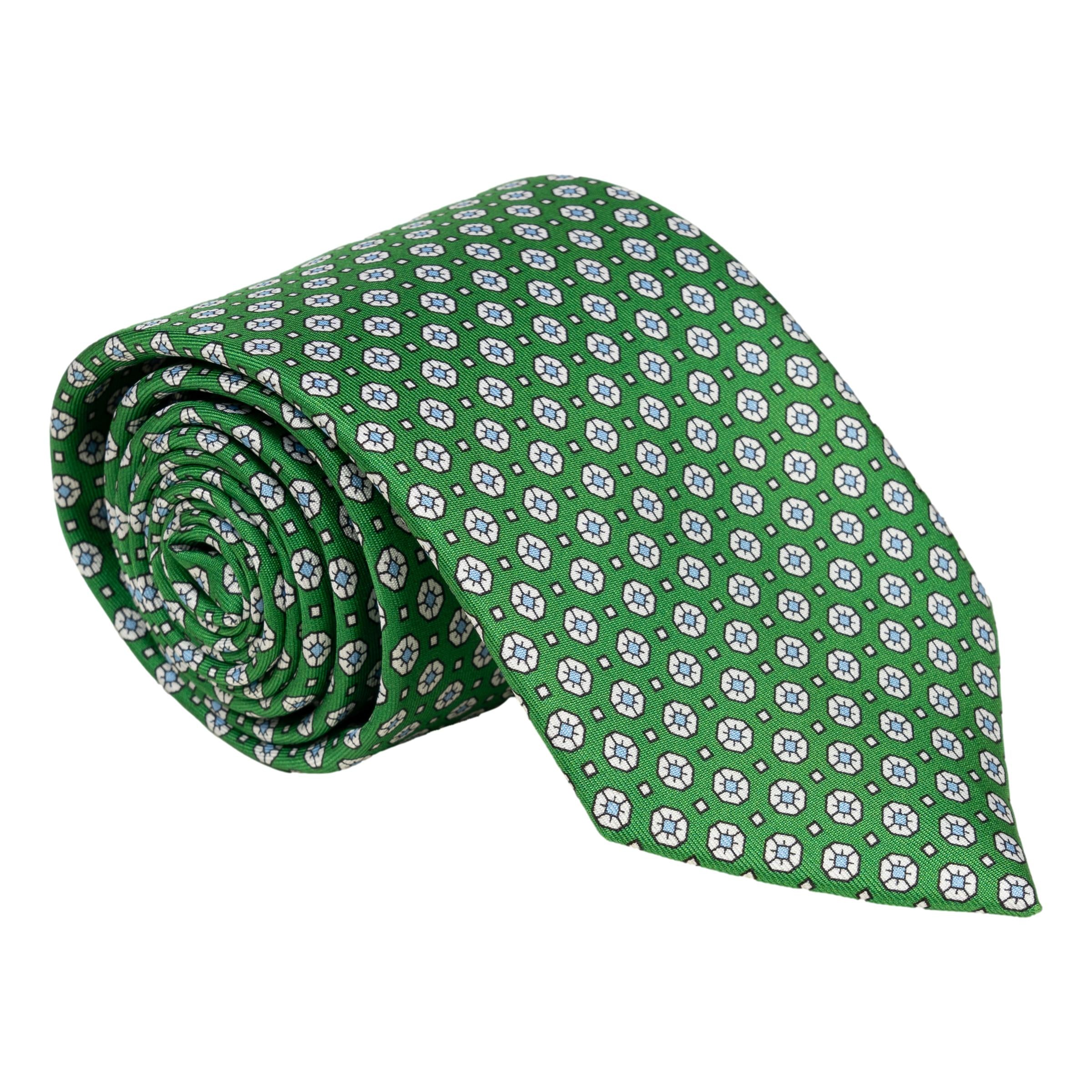 This 100% silk traditional tie is hand-finished and 8 cm in width, 149 cm in length. The color and design makes it versatile and complimentary to many wardrobe options. The perfect addition to every closet and tie collection. Made in England and dry clean only.