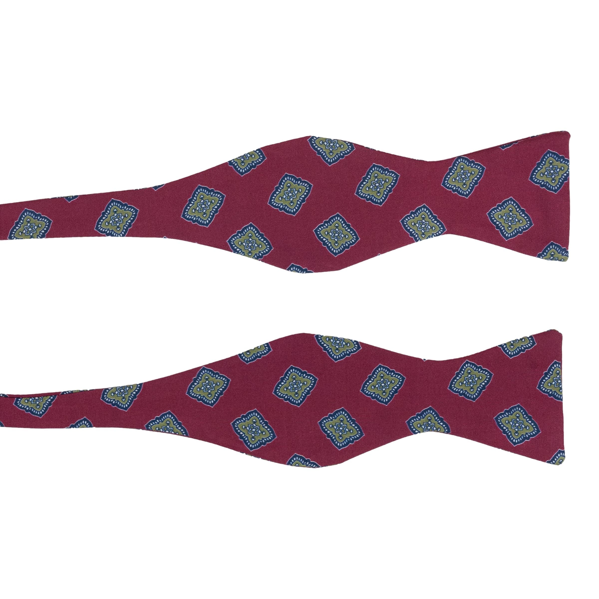 The Shield Motif Silk Bow Tie is an exquisite accessory meticulously handcrafted in Italy exclusively for The Andover Shop. Made from 100% premium silk, this bow tie exudes luxury and sophistication. Its design features a unique abstract shield, adding a touch of elegance and flair to any formal or semi-formal attire. Perfectly crafted with attention to detail, this bow tie is a timeless addition to any gentleman's wardrobe.
