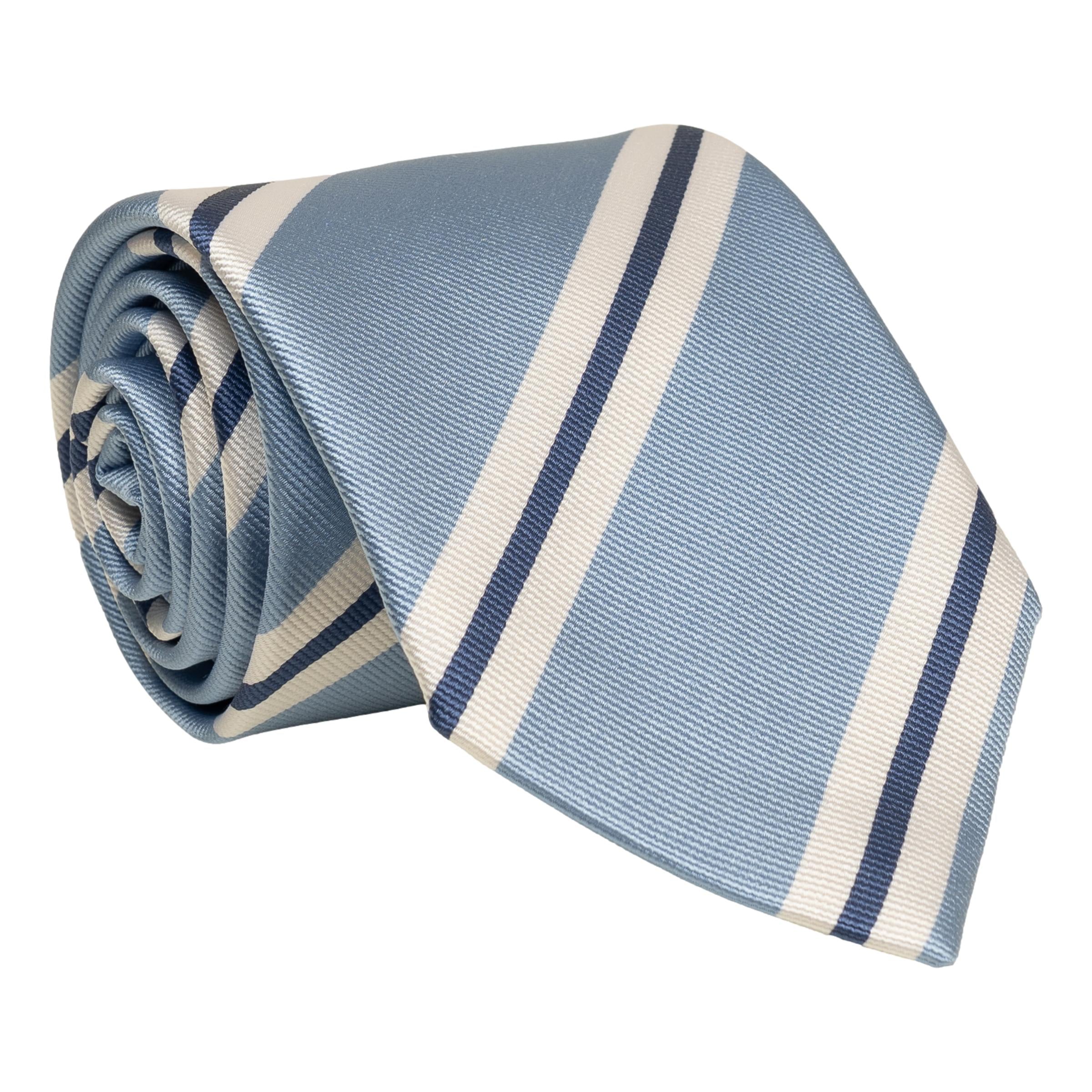 Sky Blue with White and Andover Blue Repp Stripe Silk Tie