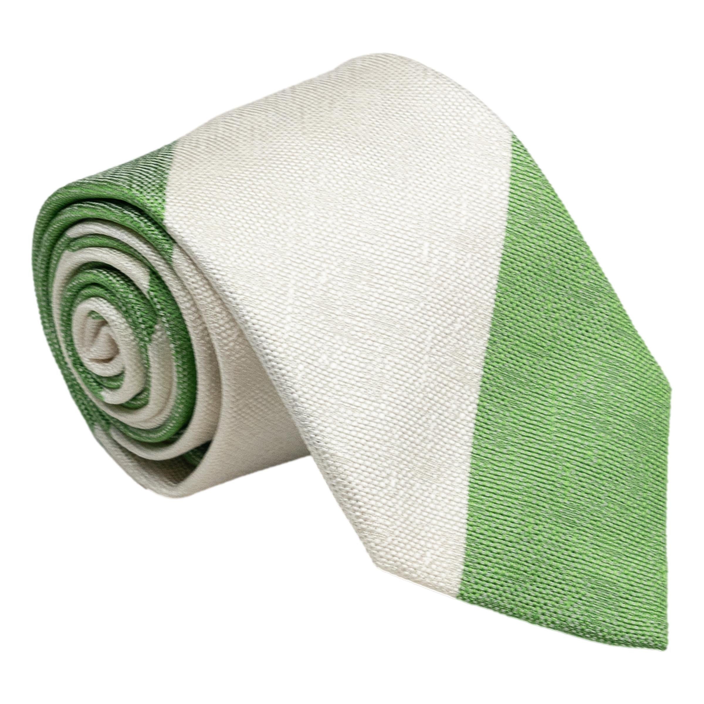 White and Green Block Stripe Silk Tie